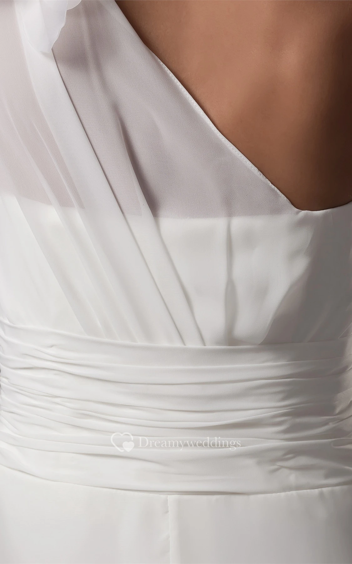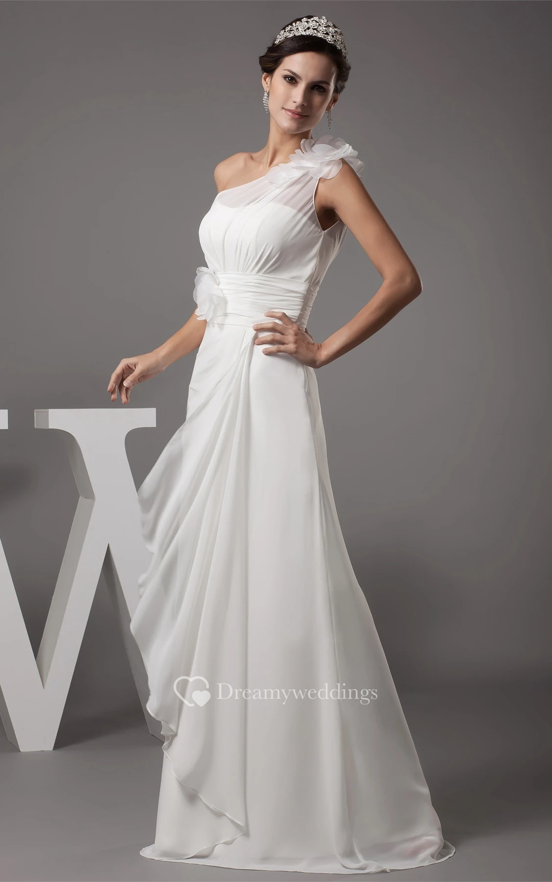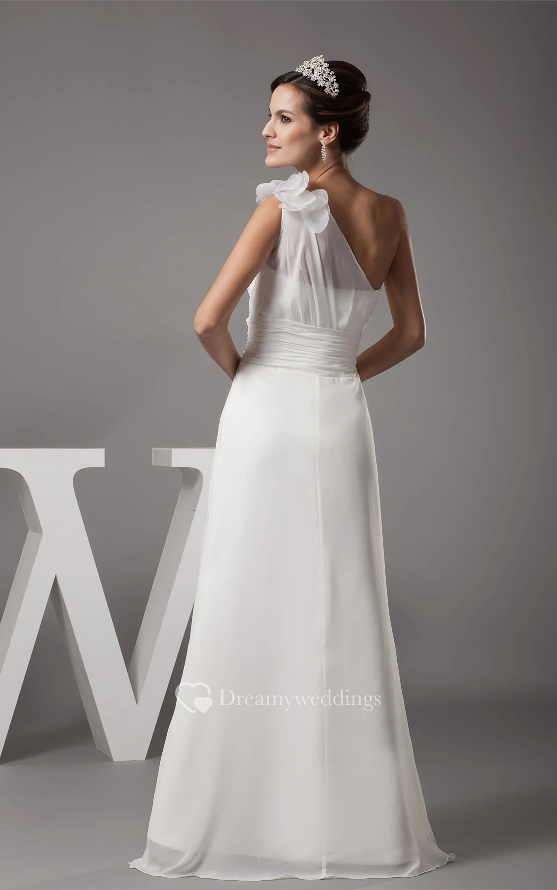 One-Shoulder Sheath Chiffon Dress With Floral Epaulet