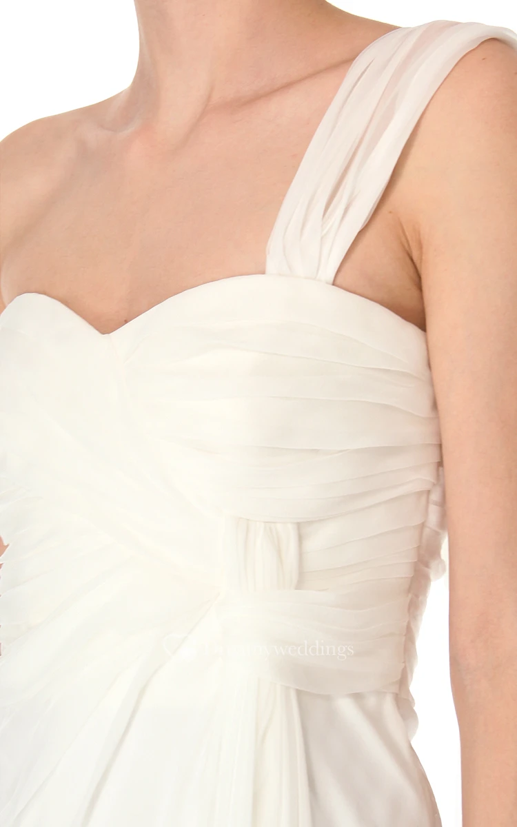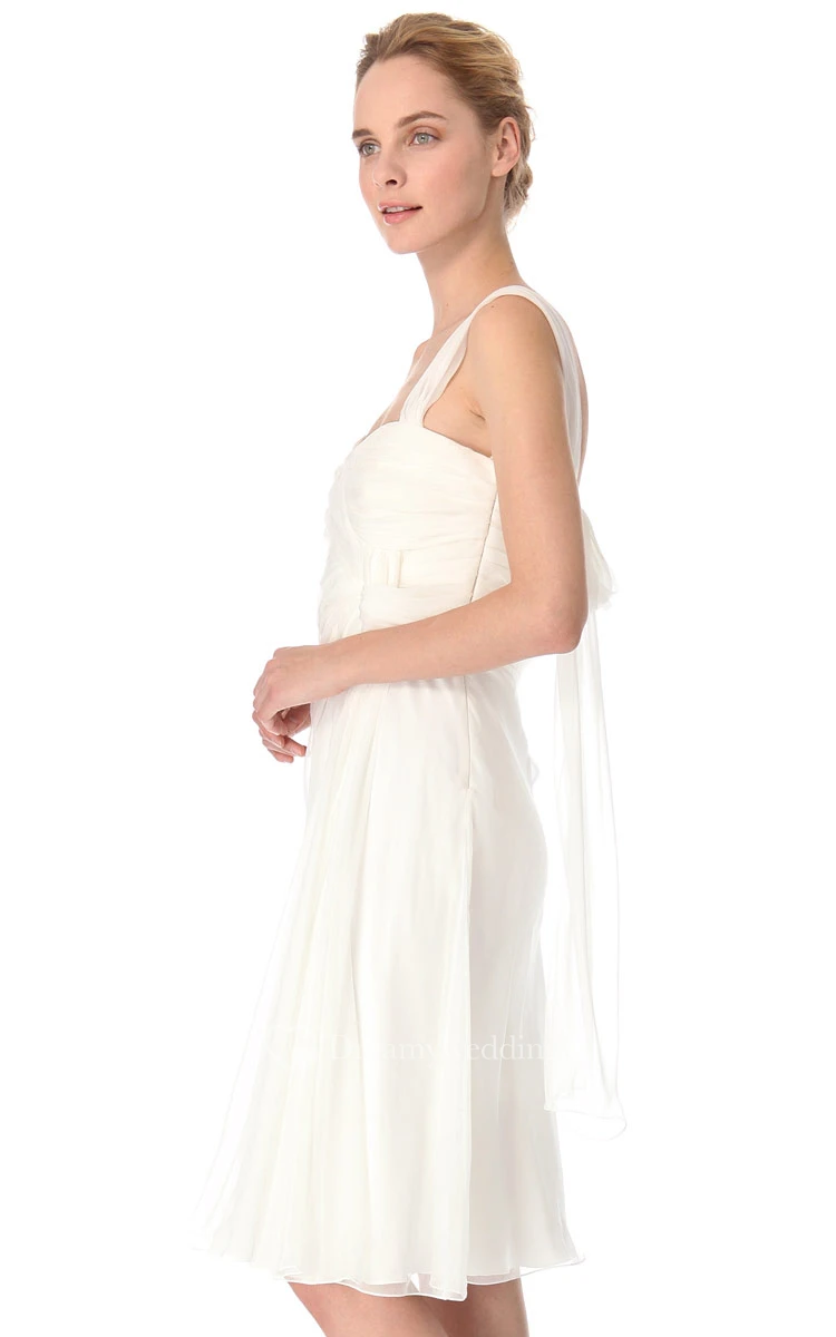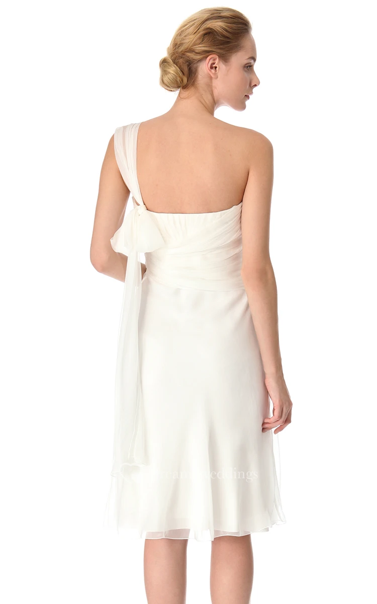 One-shoulder Sheath Chiffon Short Dress with Bow