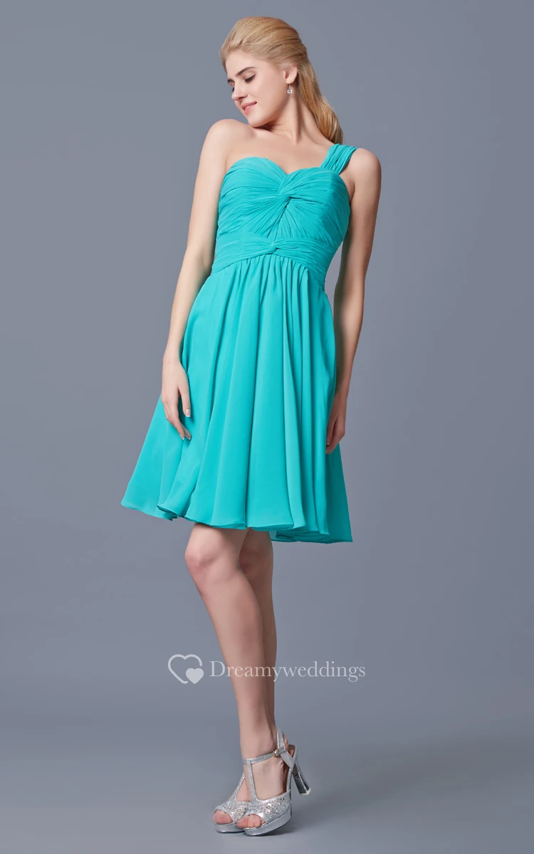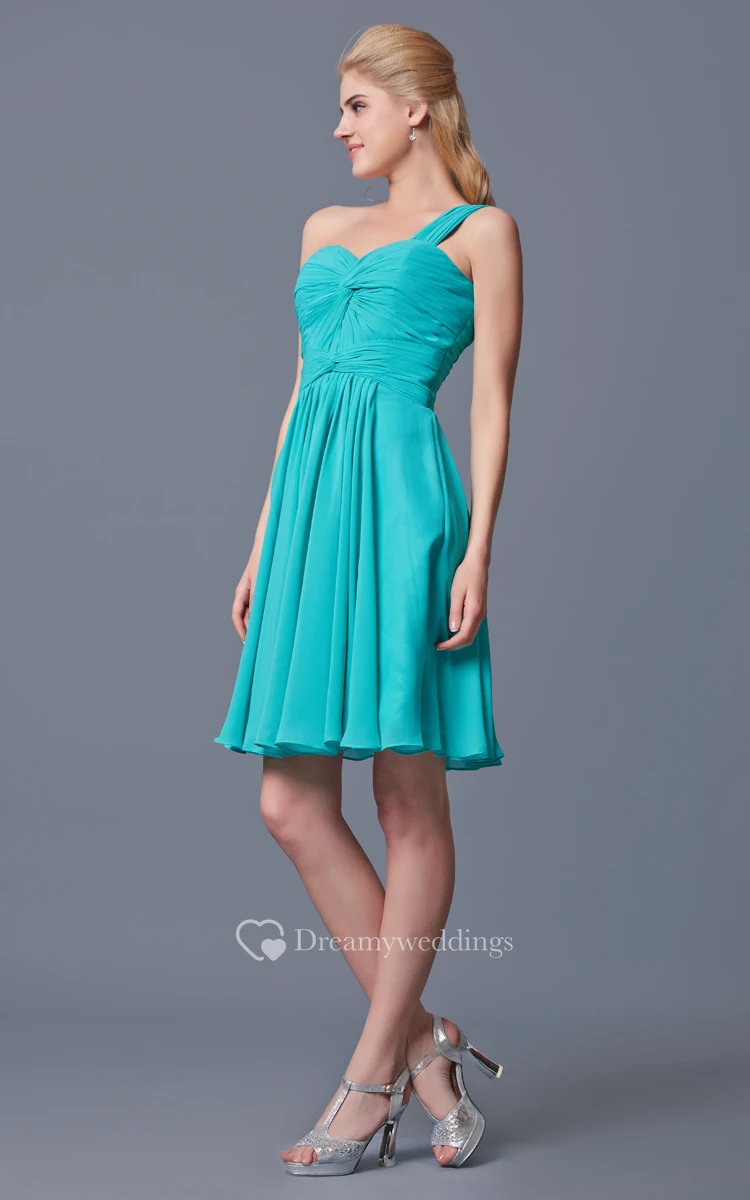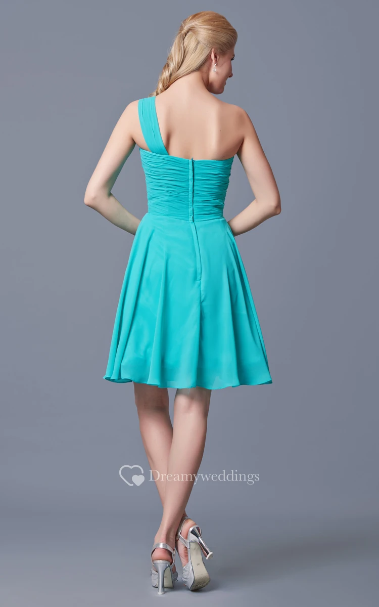 One Shoulder Short A-line Chiffon Dress With Complicated Bodice