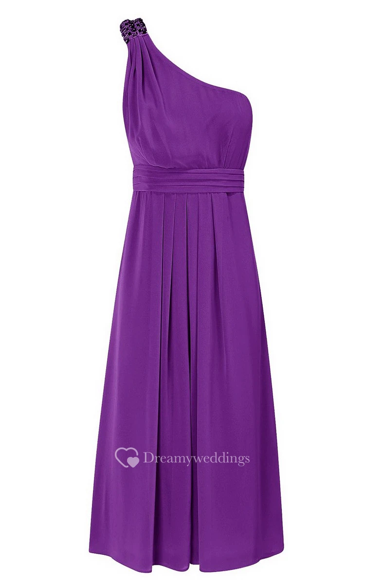 One-shoulder Short Ruffled Chiffon Dress With Beading