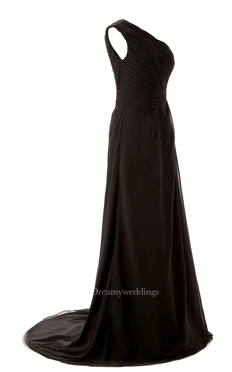 One-shoulder Side-drappping Chiffon A-line Gown With Train