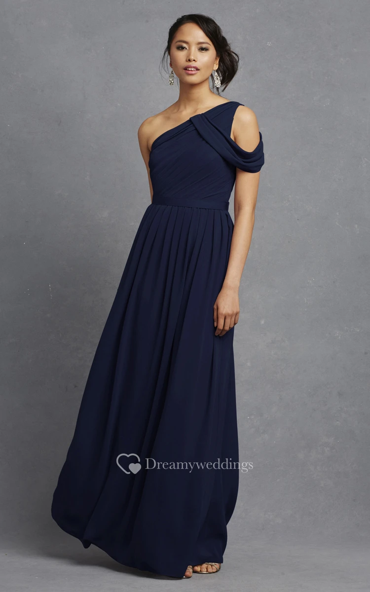 One-Shoulder Stylish Dress With Pleats And Ruching