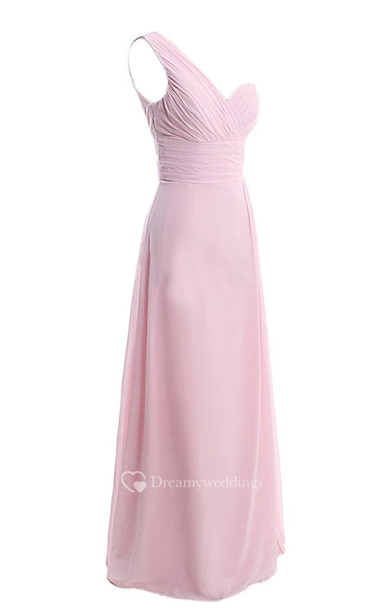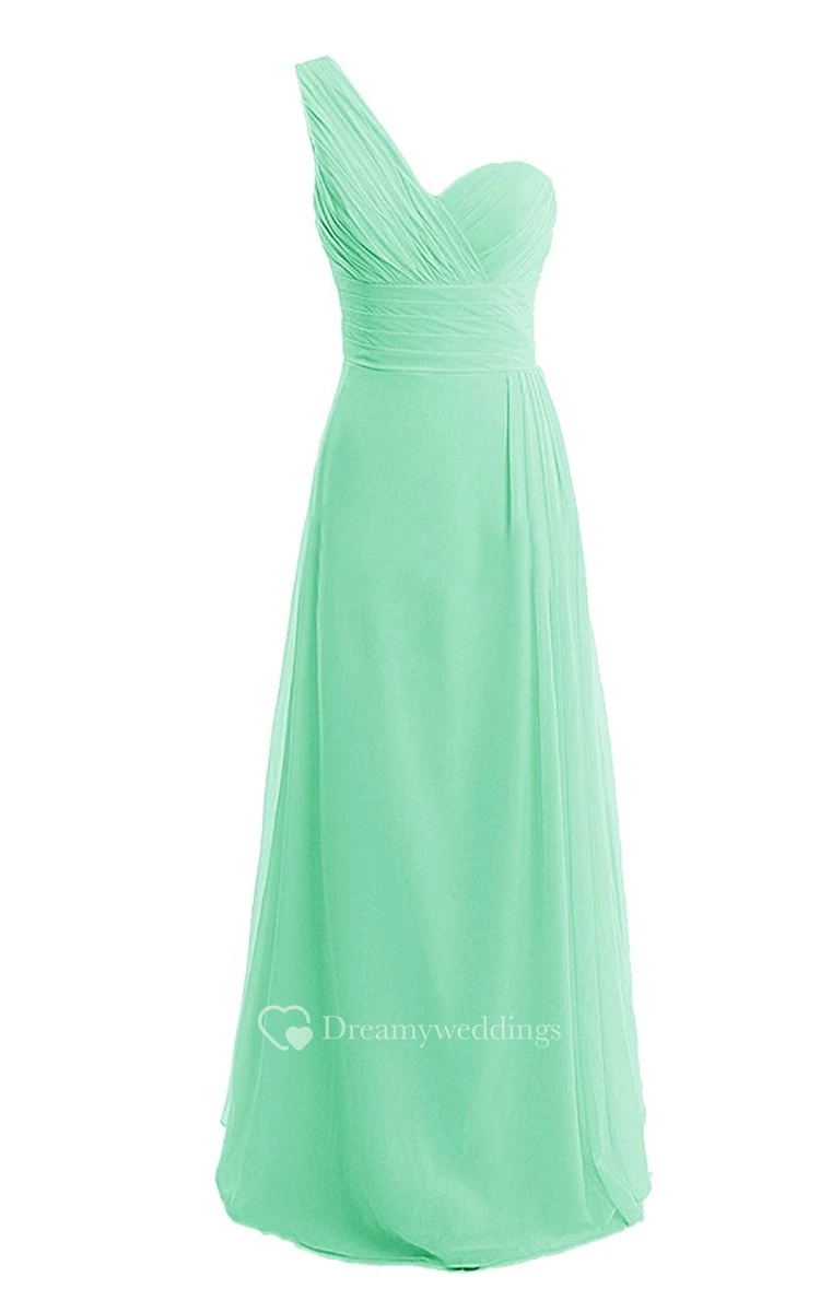 One-shoulder Sweetheart Pleated A-line Gown With Ruched Band