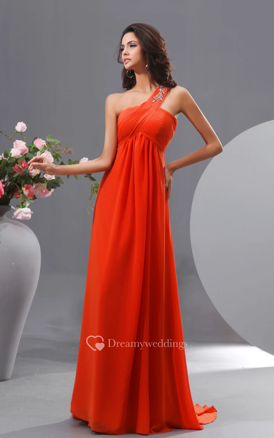 One-Strap Chiffon Floor-Length Dress With Brush Train