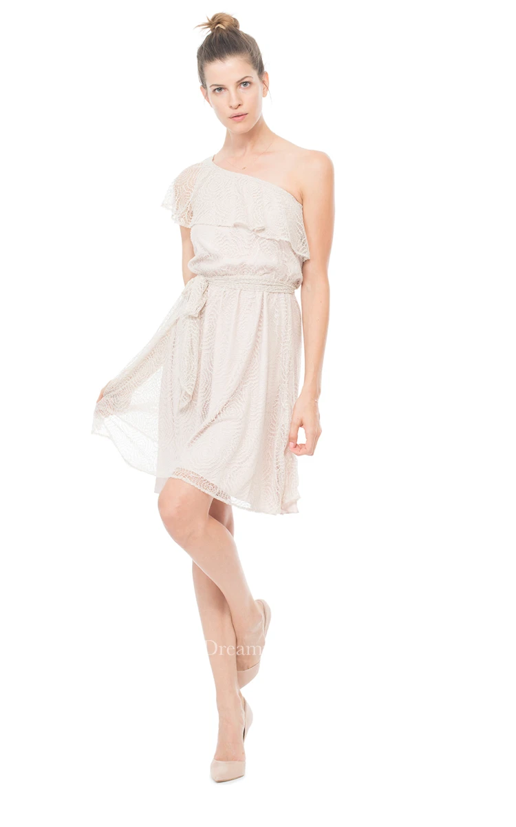Ong-Shoulder A-Line Short Modern Dress With Ruffles