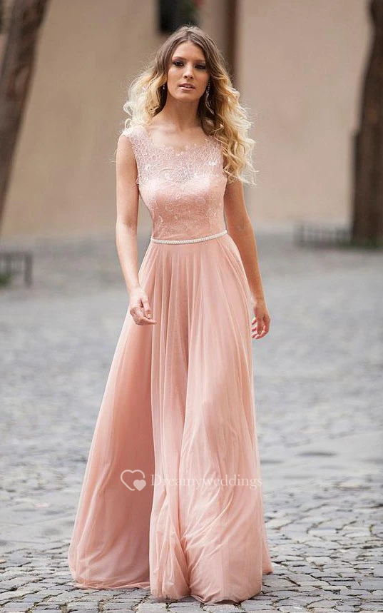 Open Back Illusion Boat Neck Sleeveless Long Dress With Lace Bodice