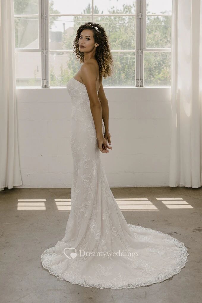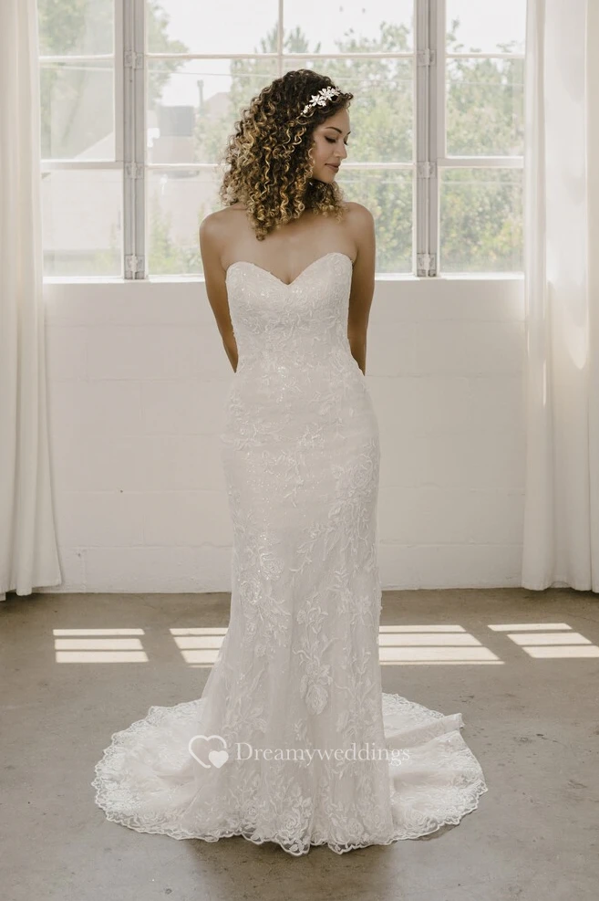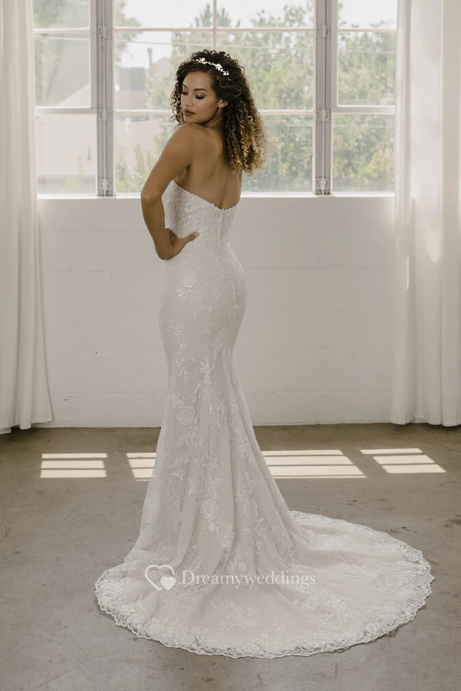 Open Back Sleeveless Mermaid Sweetheart And Buttons Lace Wedding Dress