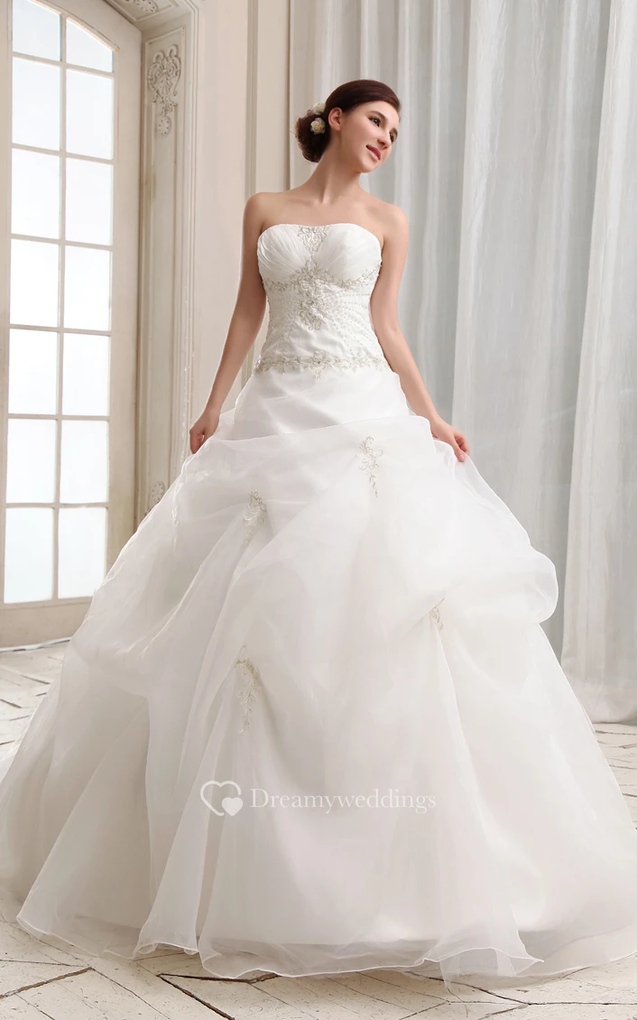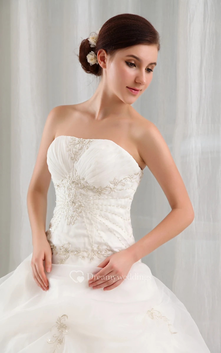 Organza A-Line Ball Gown With Beading and Tulle Overlay