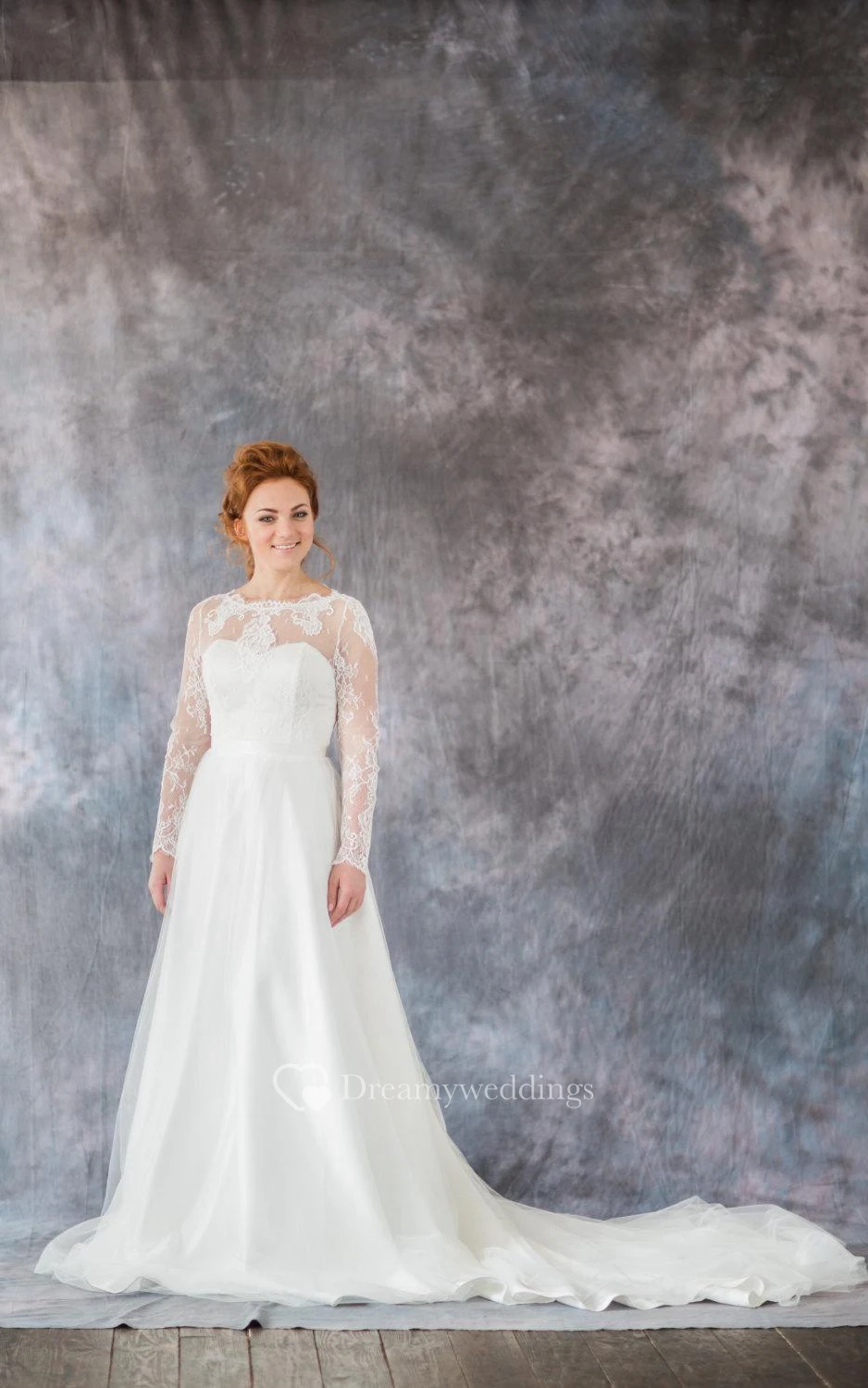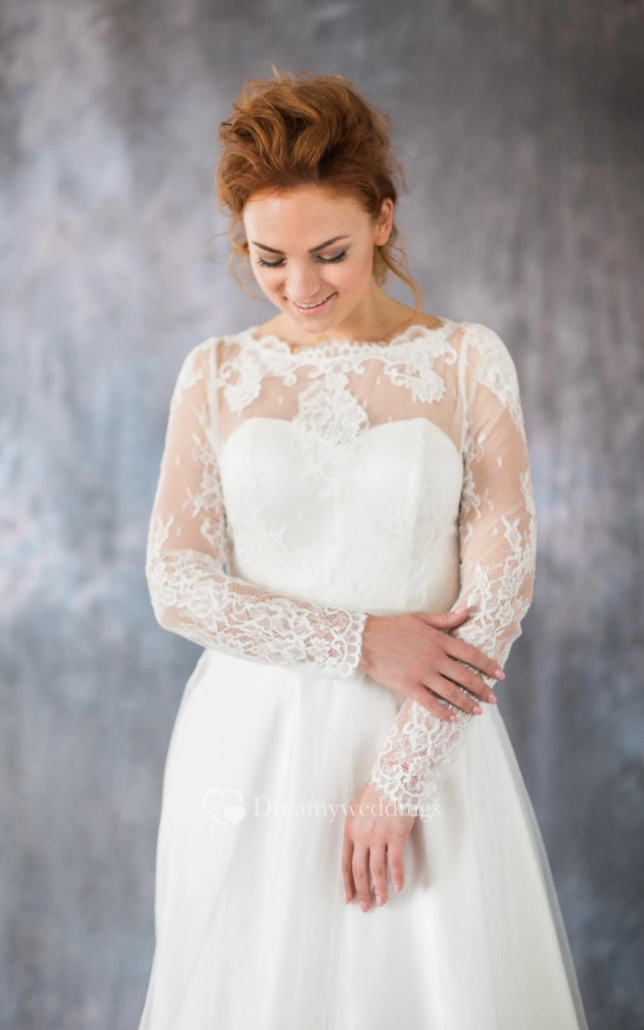 Organza Long Sleeve A-Line Bridal Gown With Illusion Back