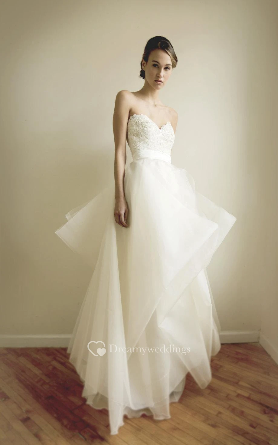 Organza Sweetheart A-Line Dress Wit Lace Bodice and Ruffled Skirt