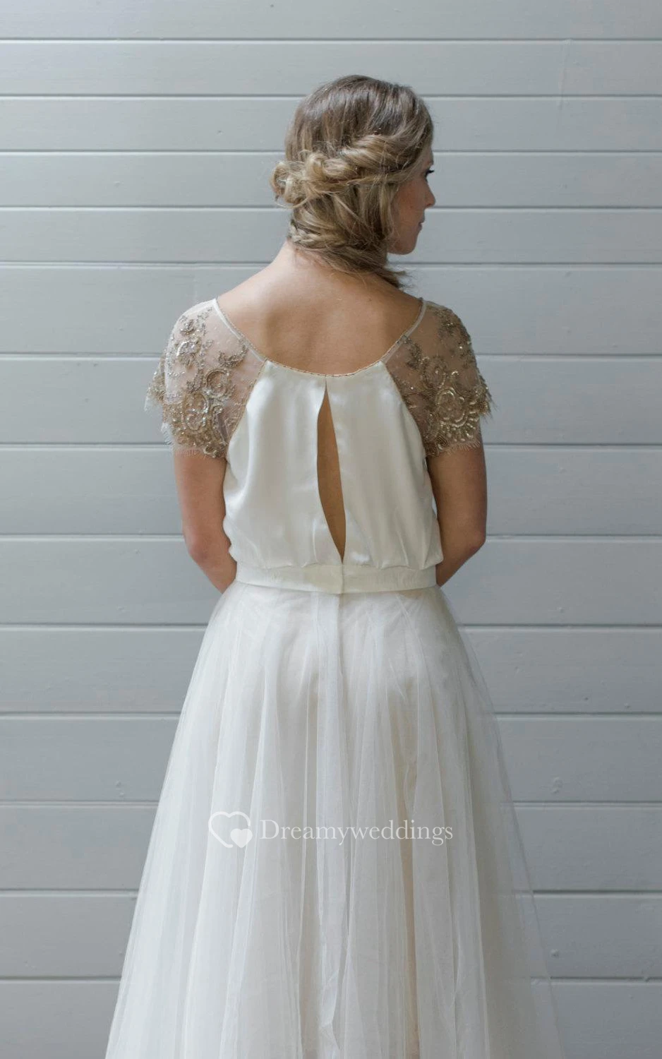 Paige Wedding With Copper Beading And Tulle Skirt Ivory Dress