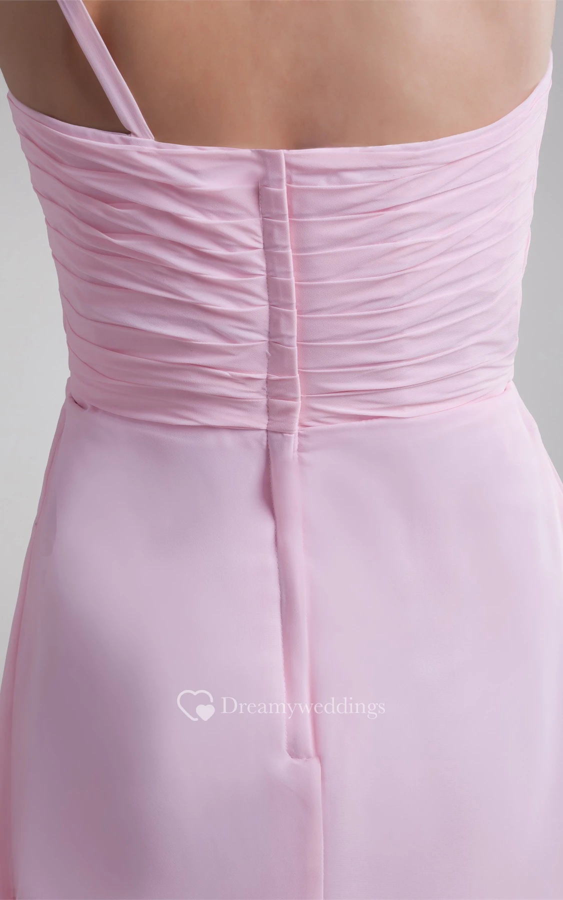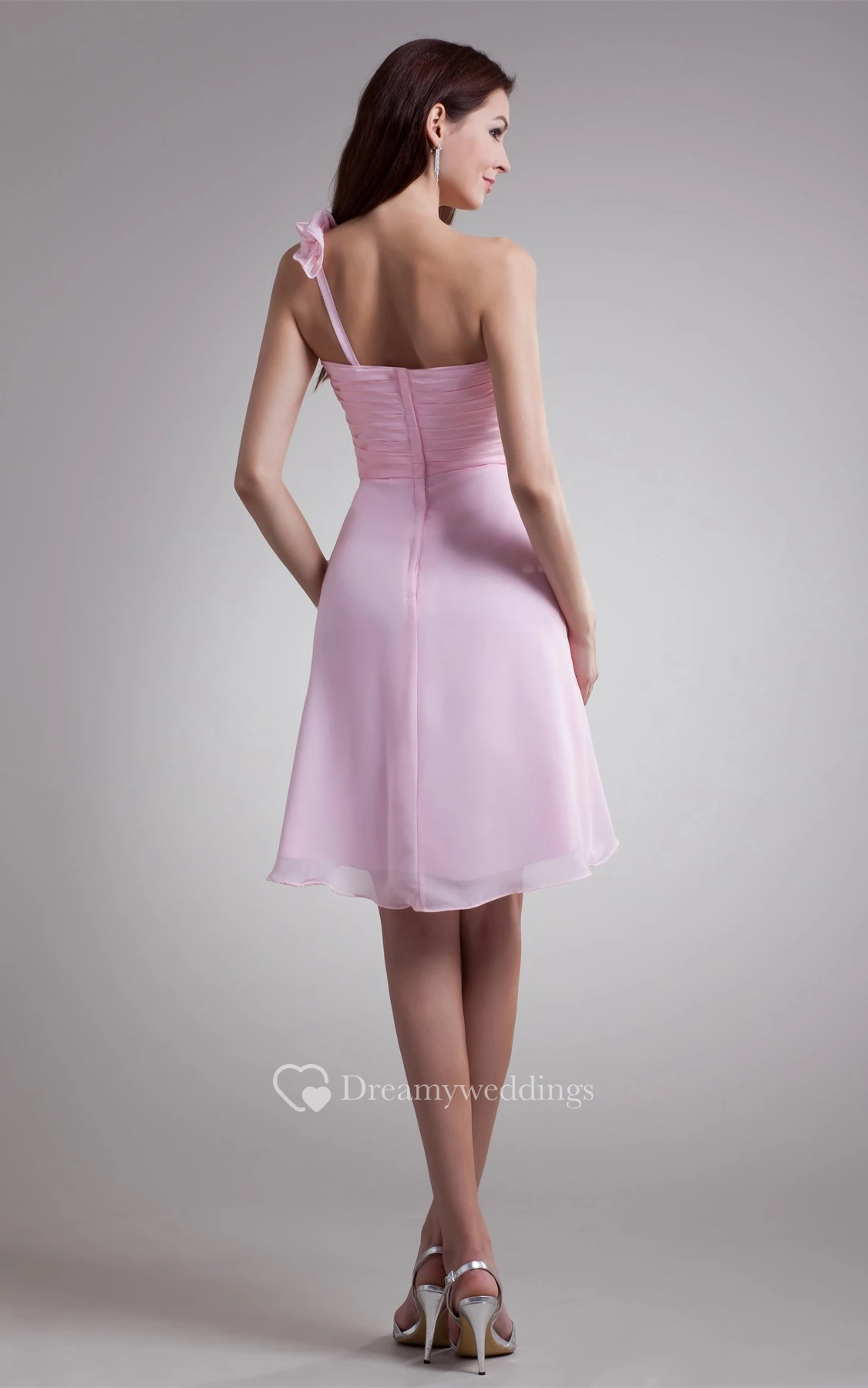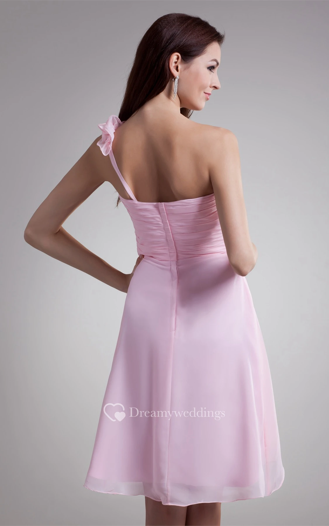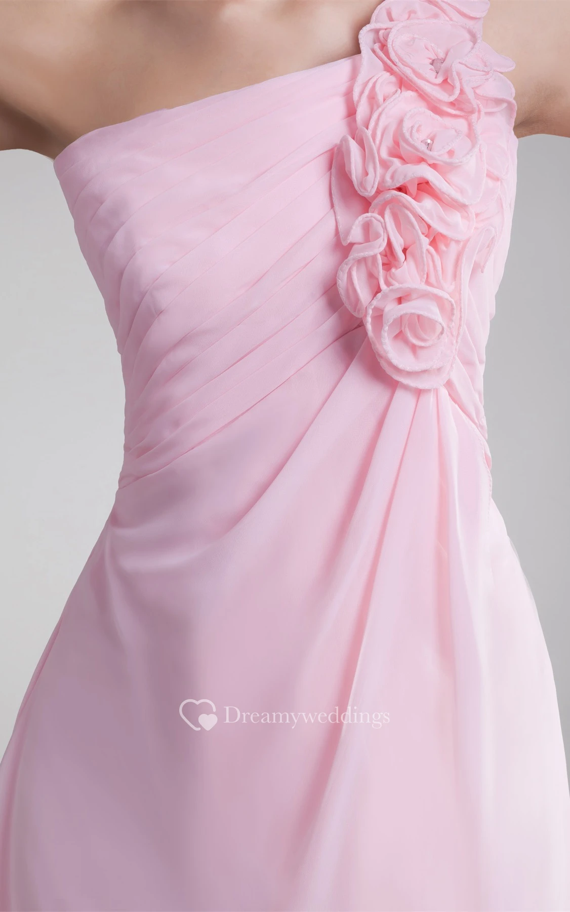 Pastel High-Low One-Shoulder Flower and Dress With Ruching