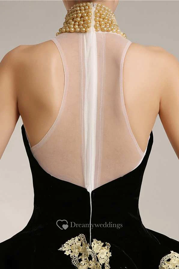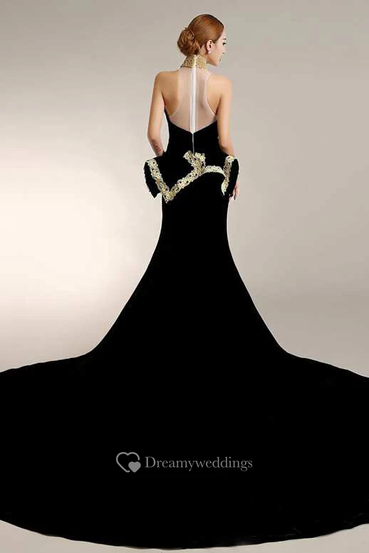 Pearl High Neck Sleeveless Mermaid Satin Gown With Peplum