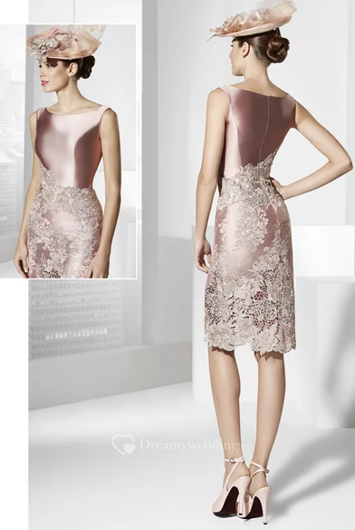 Pencil Appliqued Half-Sleeve Knee-Length Satin Prom Dress With Jacket