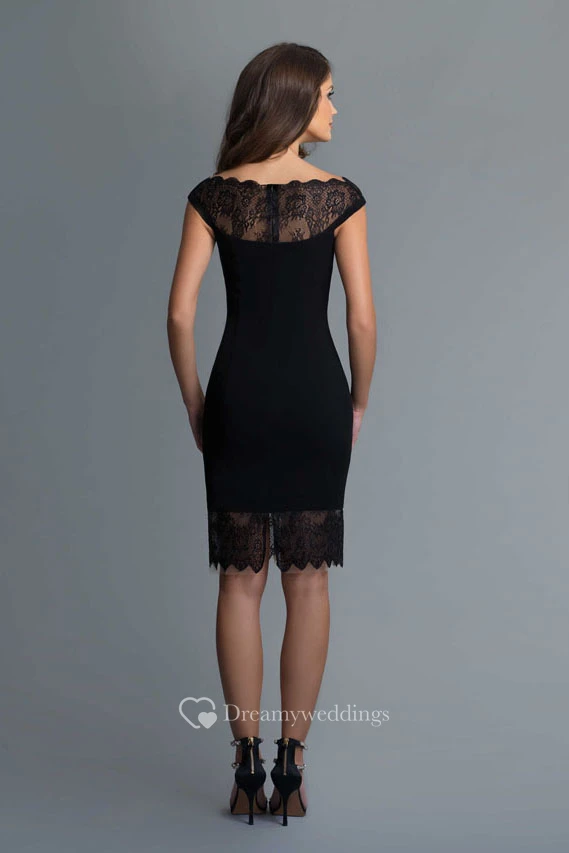 Pencil Knee-Length Bateau Cap-Sleeve Jersey Illusion Dress With Lace