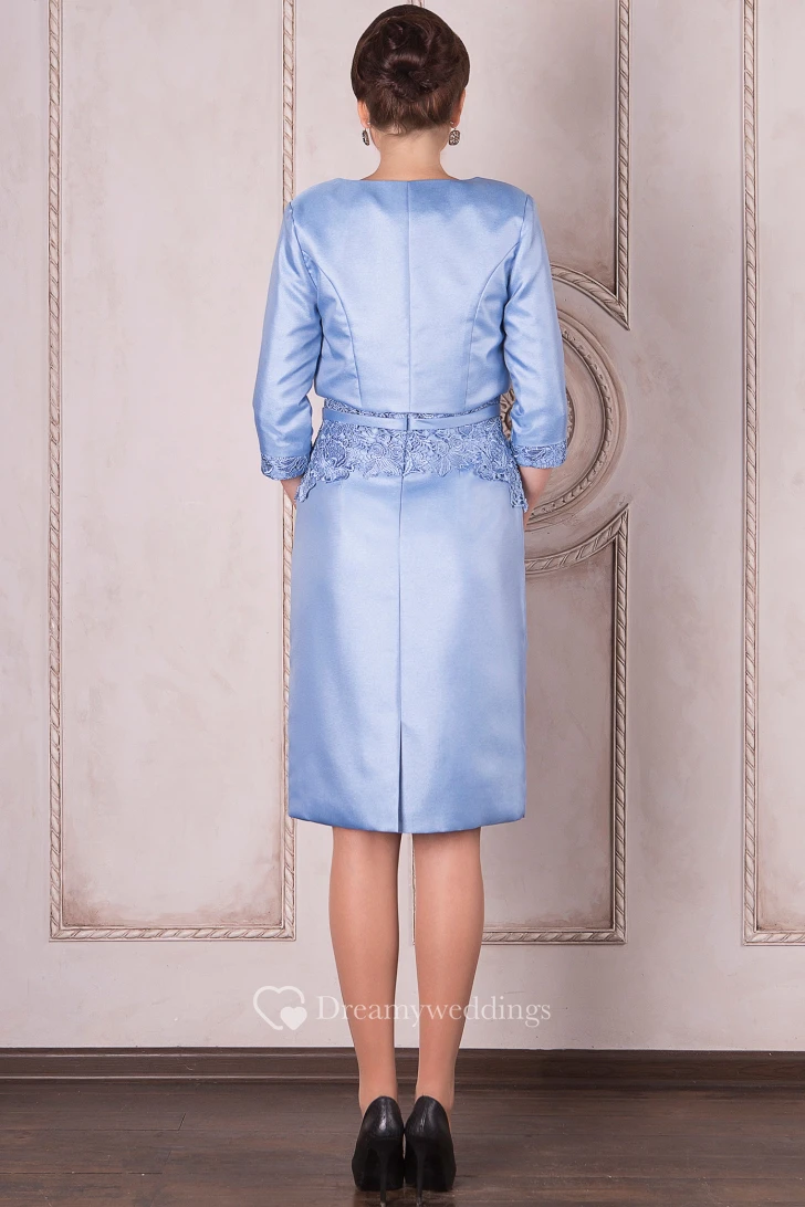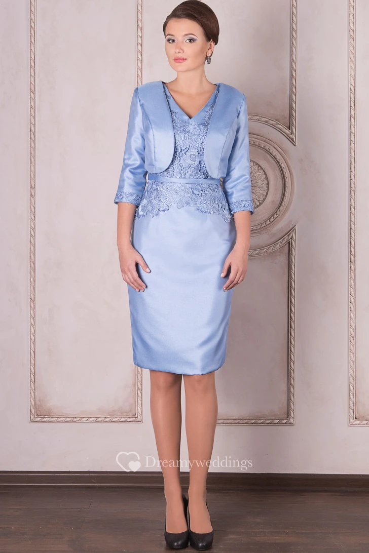 Pencil Knee-Length V-Neck Half Sleeve Appliqued Satin Mother Of The Bride Dress