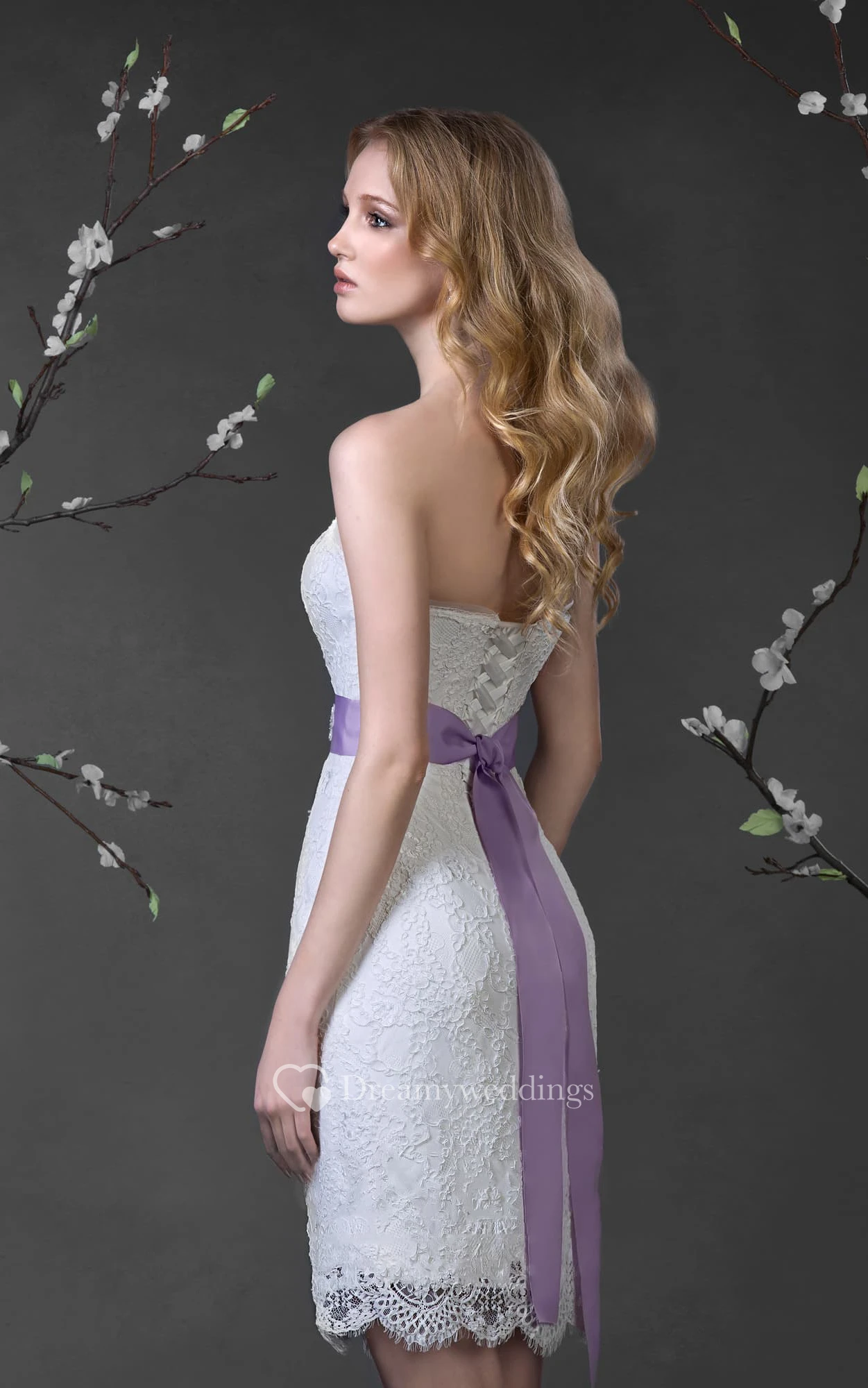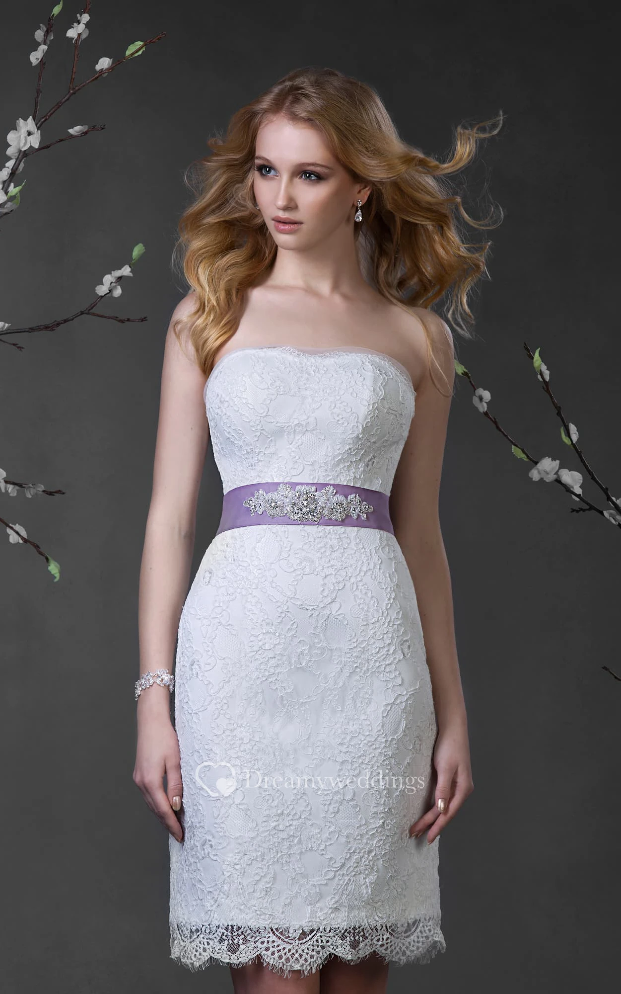 Pencil Short Strapless Sleeveless Lace-Up Lace Dress With Waist Jewellery