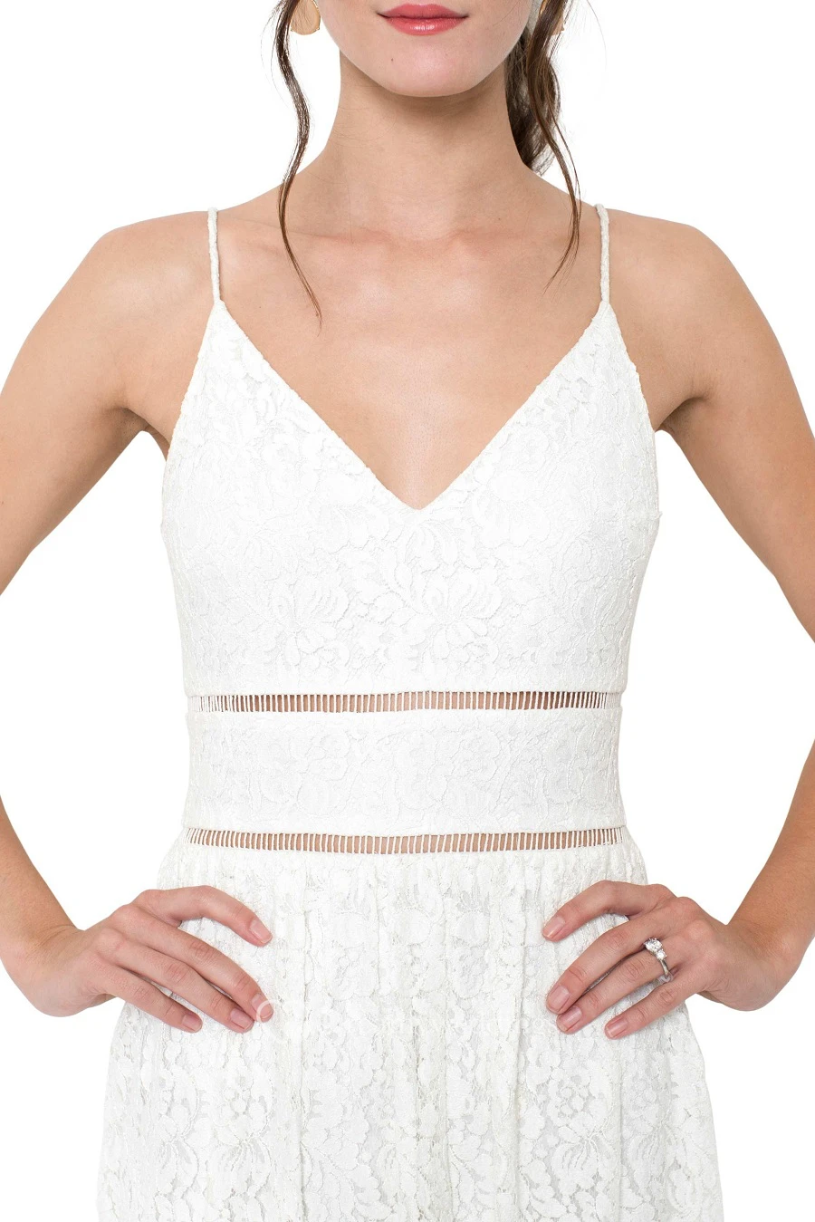 Pencil Tea-Length Spaghetti Sleeveless Lace Little White Dress With Deep-V Back