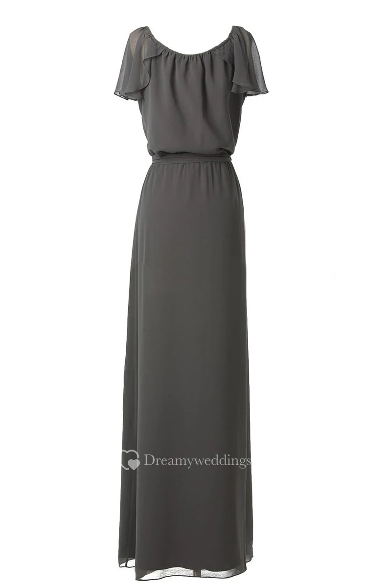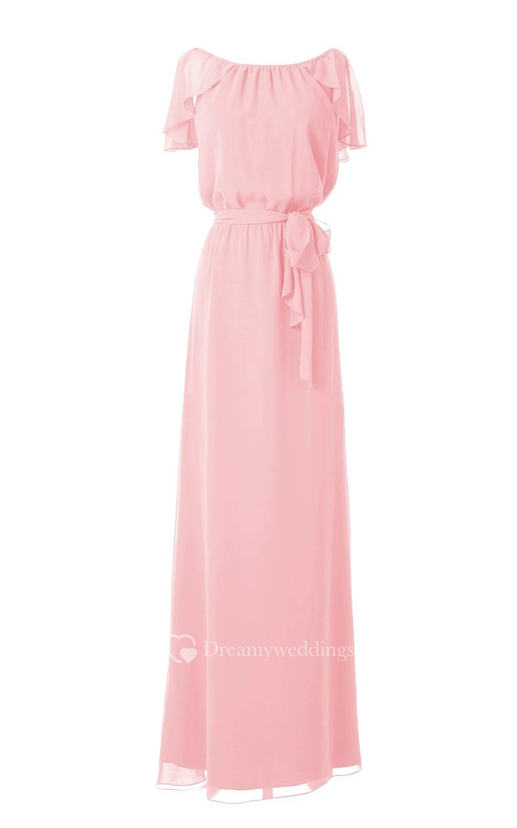 Petal Scoop Chiffon A-line Gown With Sash