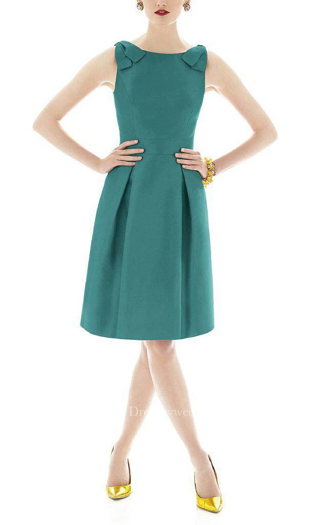 Pleated A-line Satin Short Dress with Bows