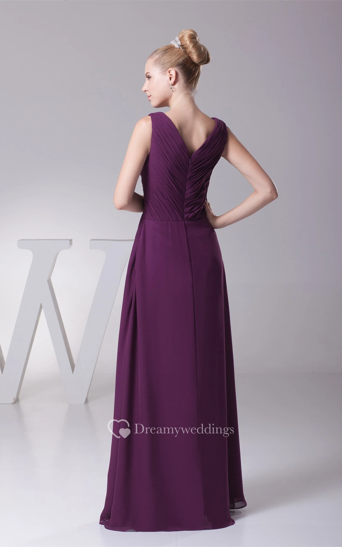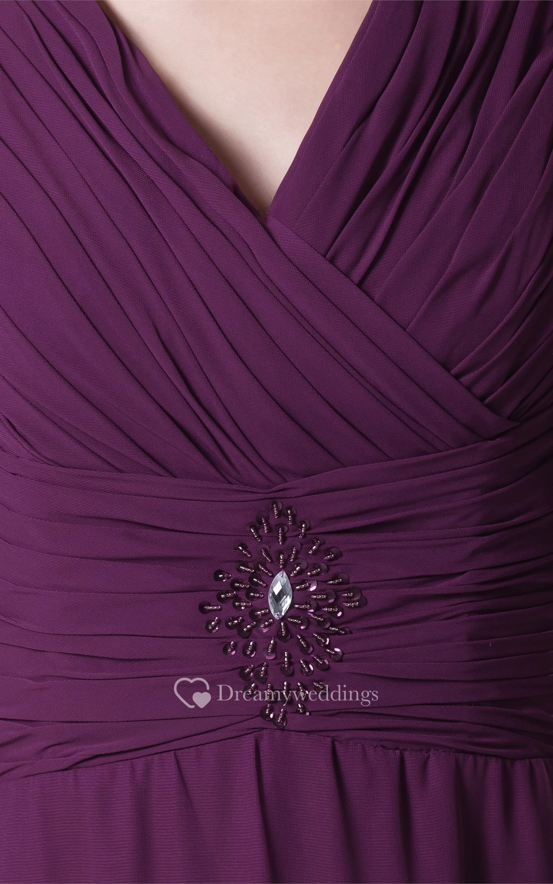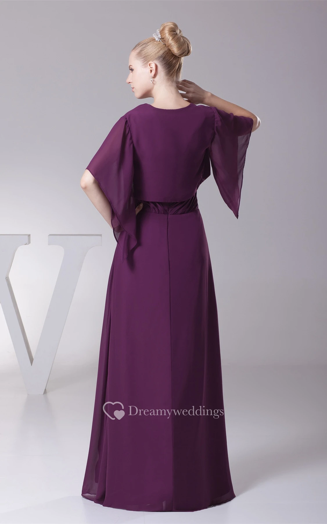 Plunged Chiffon Floor-Length Criss-Cross Bolero and Dress With Broach