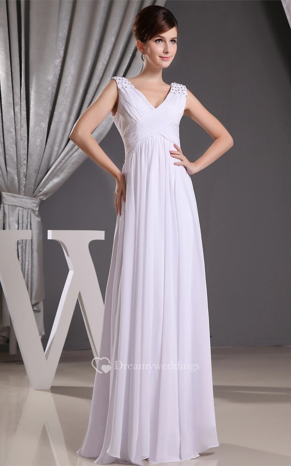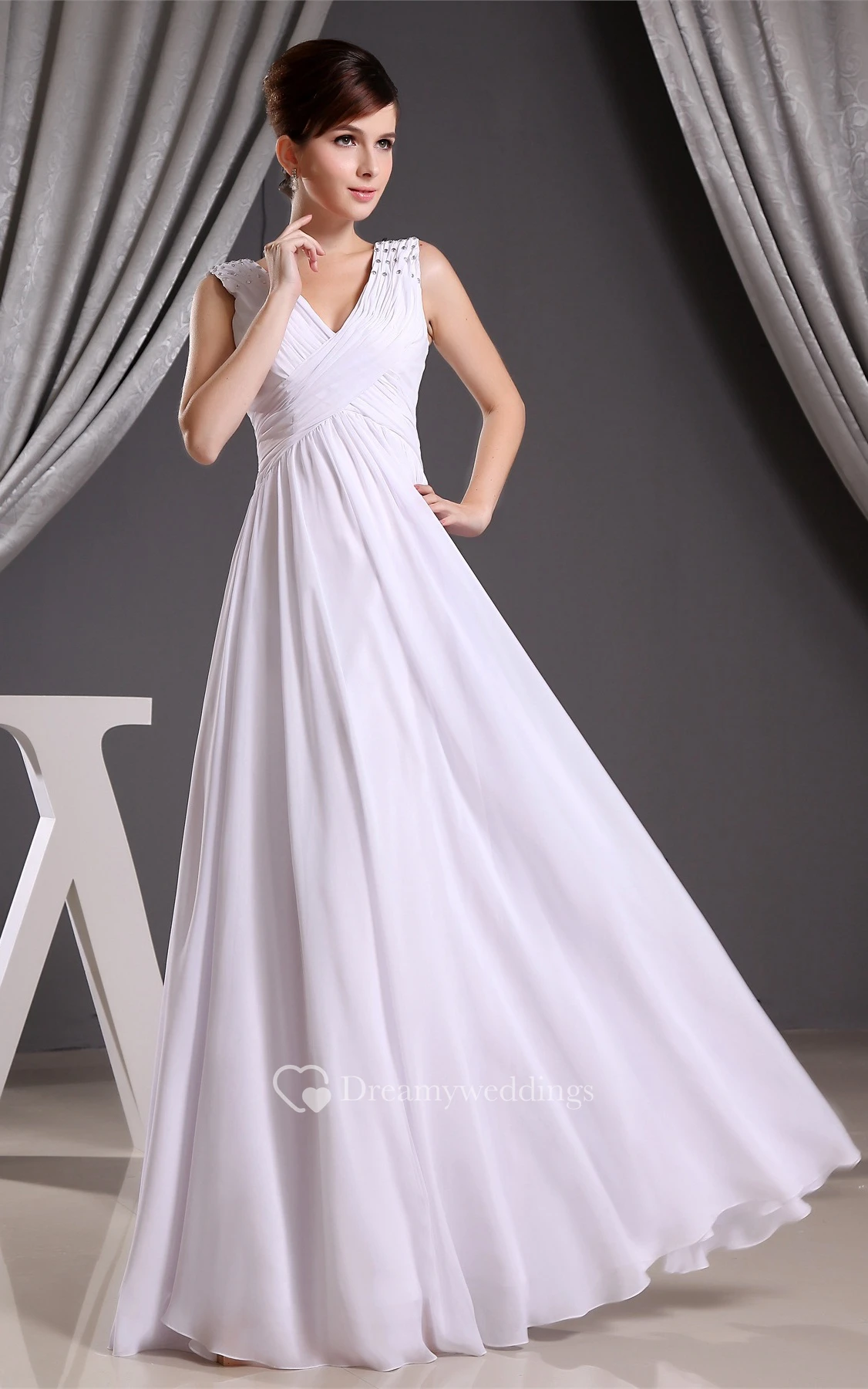 Plunged Criss-Cross Long Caped-Sleeve Empire Waist and Dress With Beading