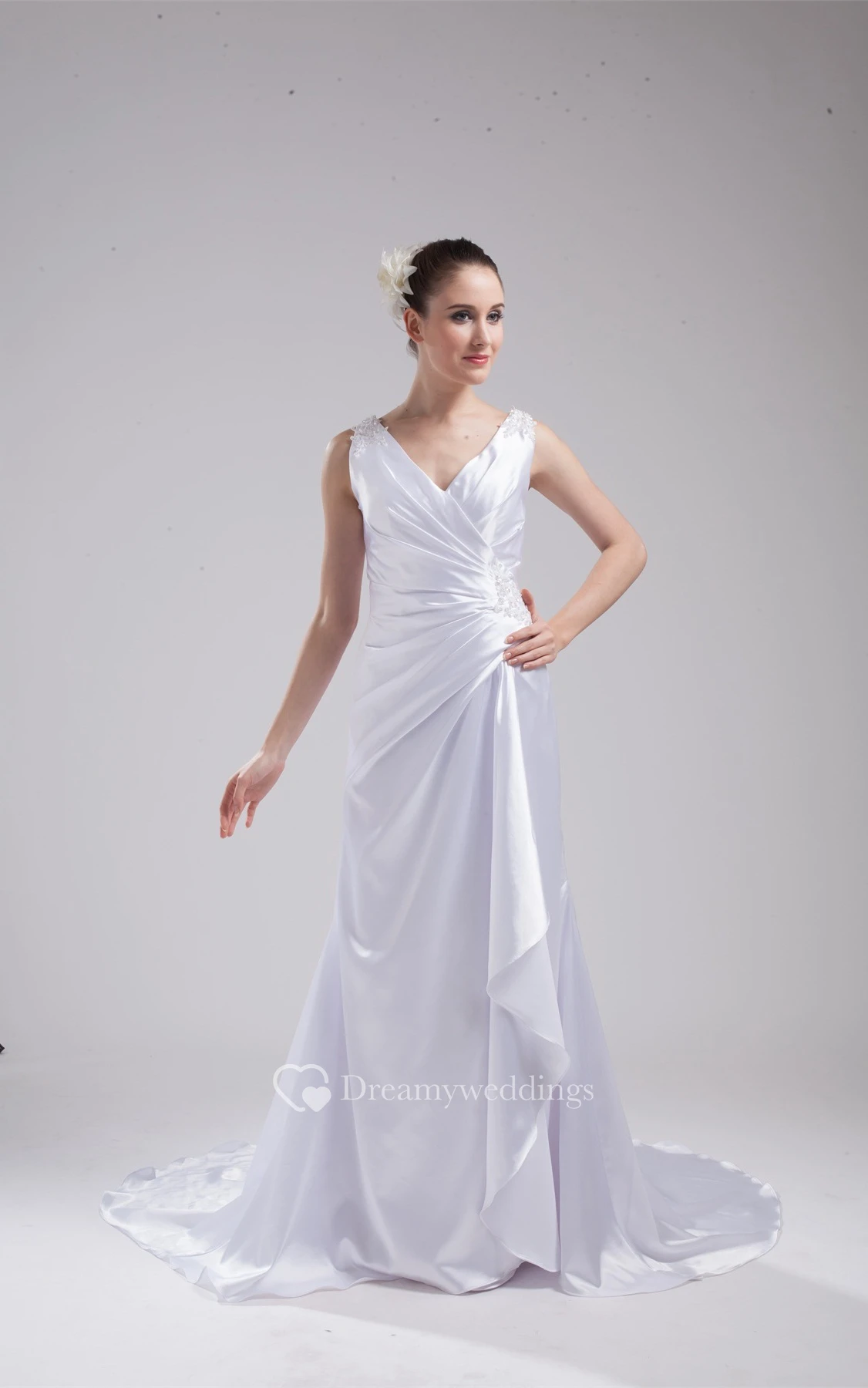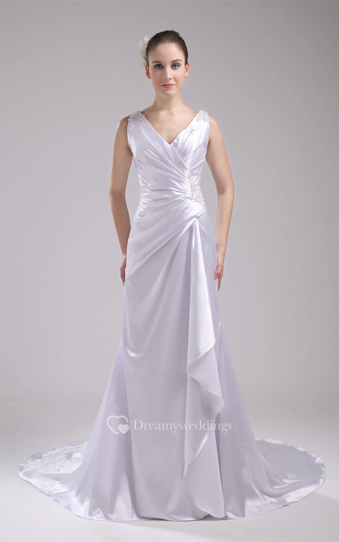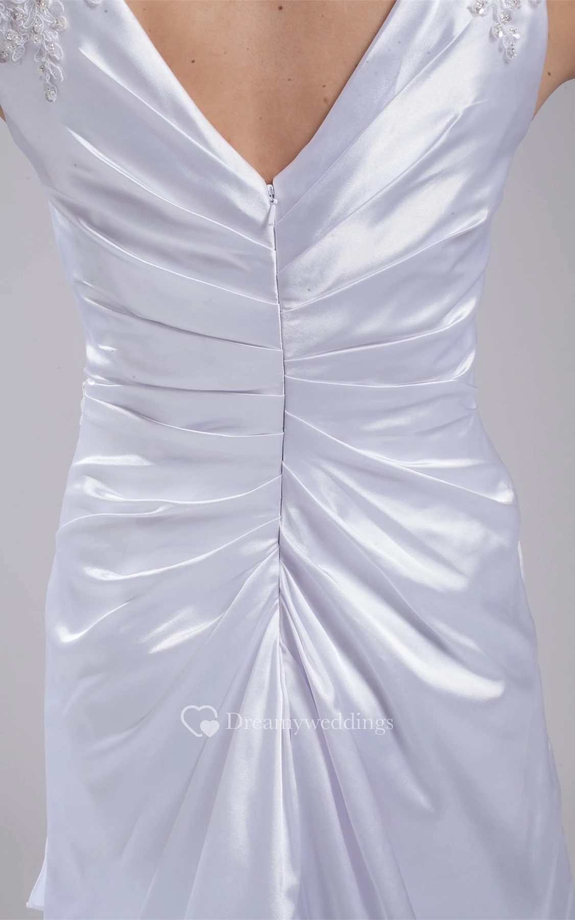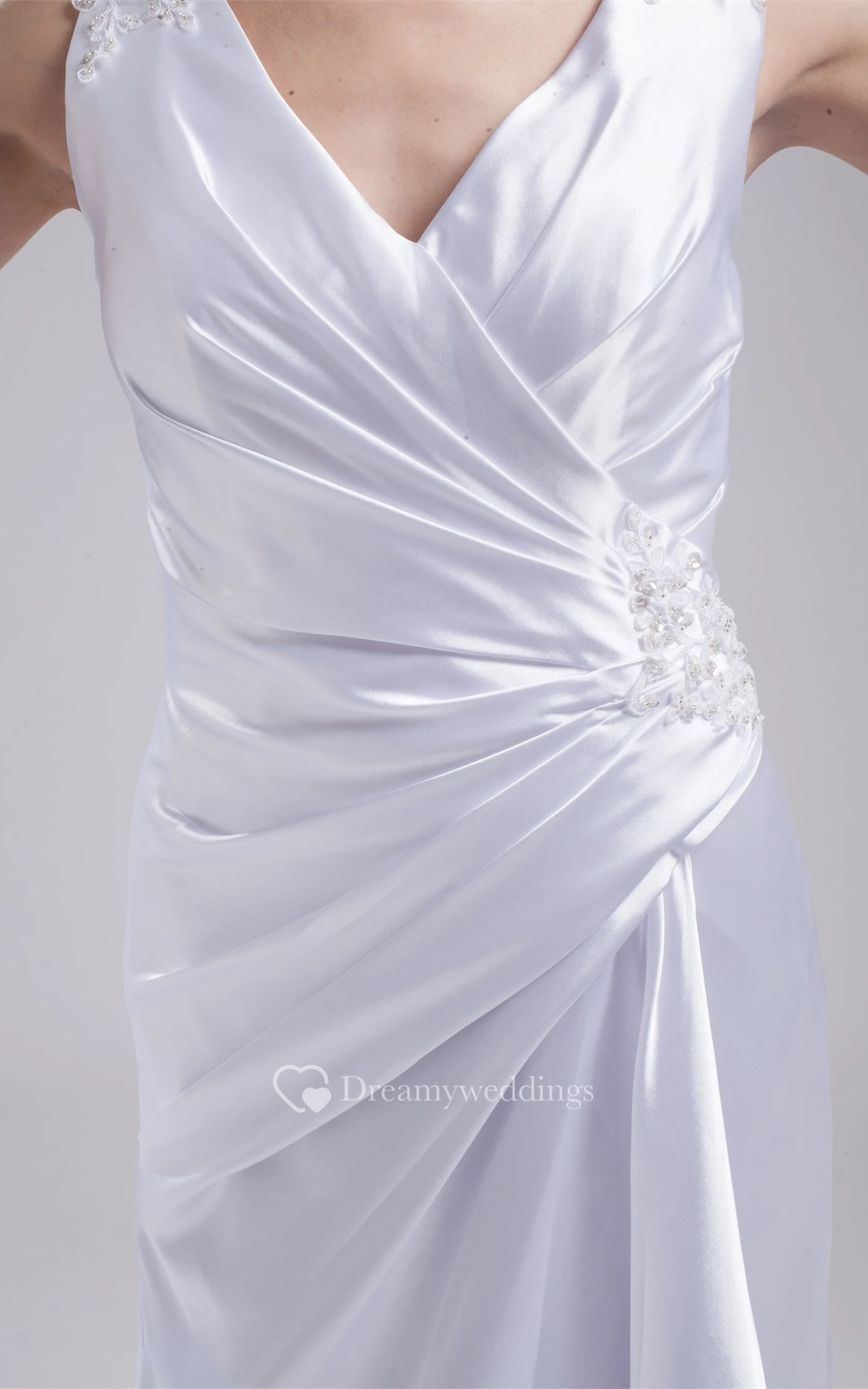 Plunged Floor-Length Sleeveless Side Ruching and Dress With Appliques