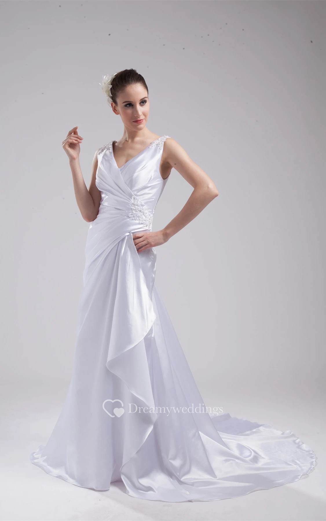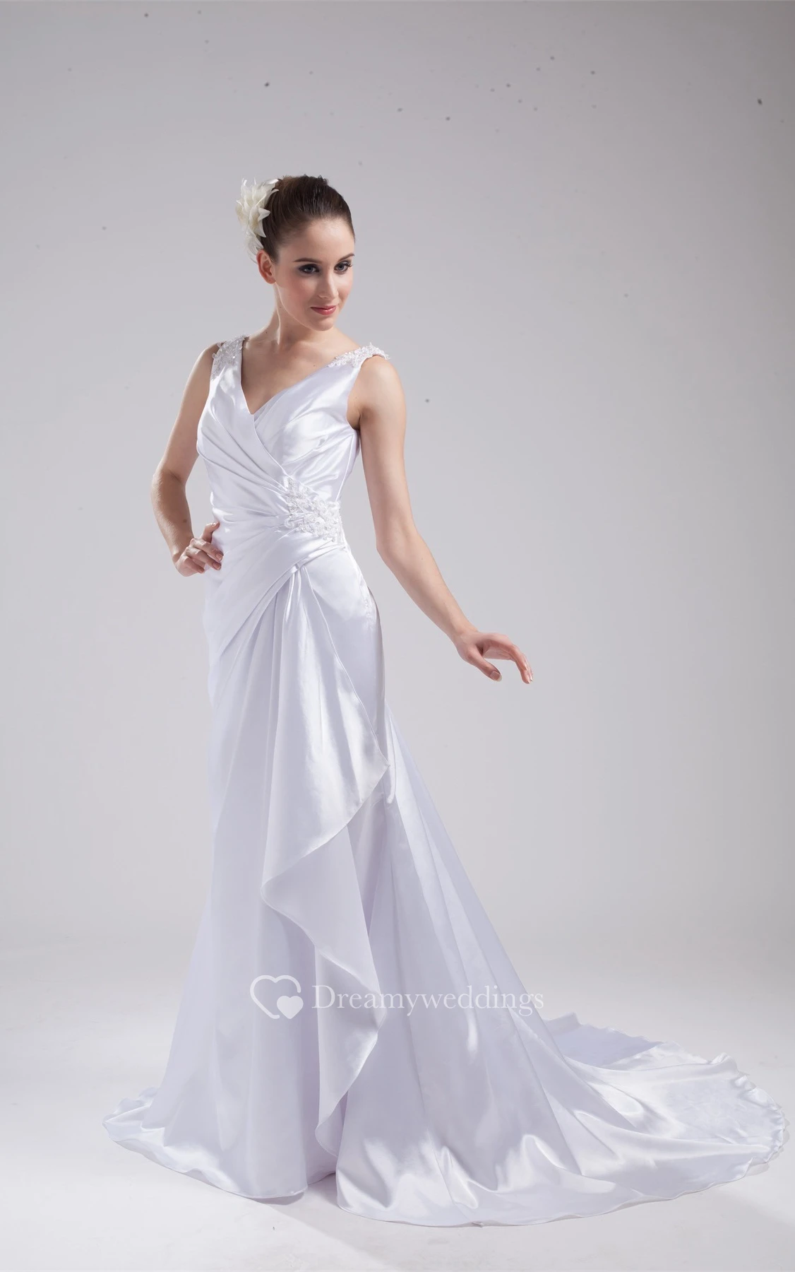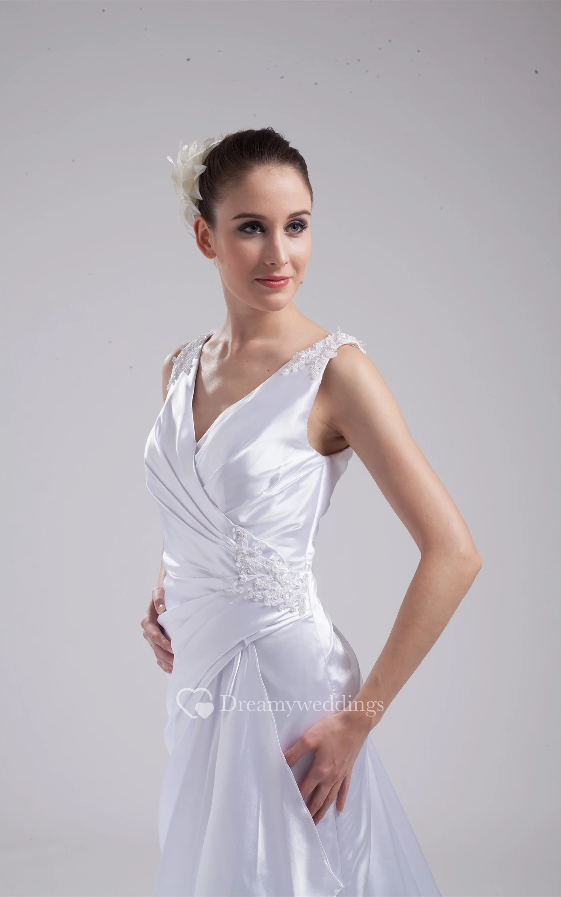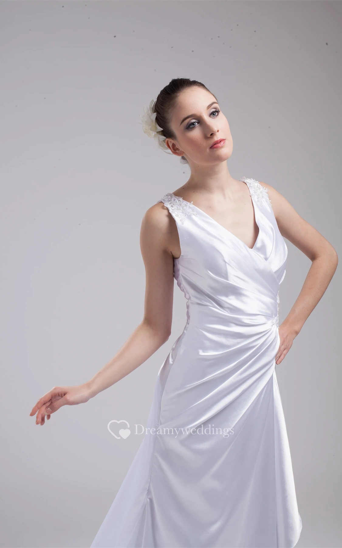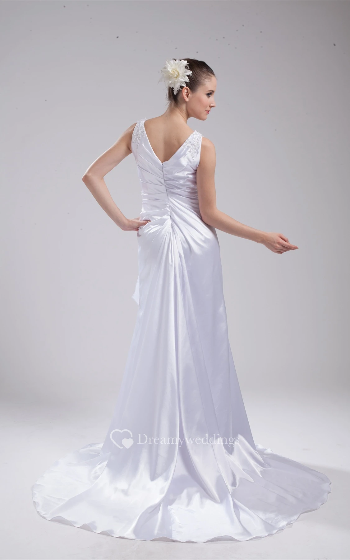Plunged Floor-Length Sleeveless Side Ruching and Dress With Appliques