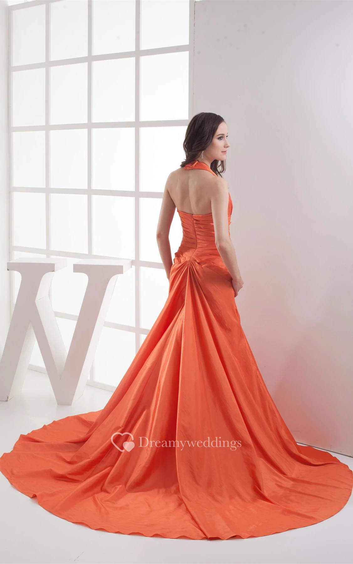 Plunged Maxi Halter and Dress With Central Ruching