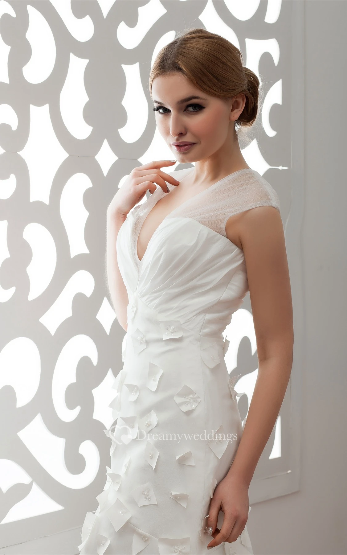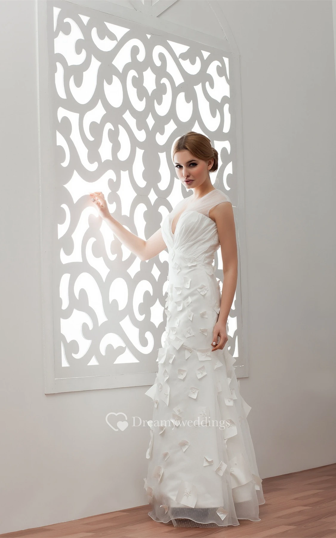 Plunged Maxi Illusion Flower and Dress With Ruching