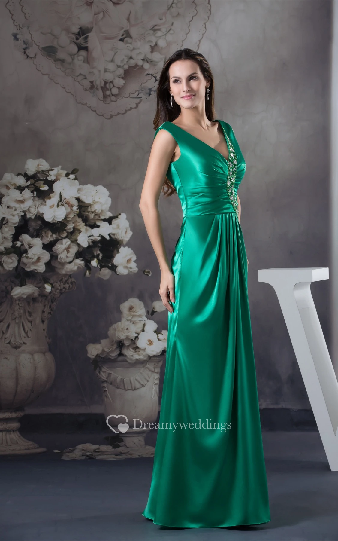 Plunged Sheath Sleeveless Stress and Dress With Pleats