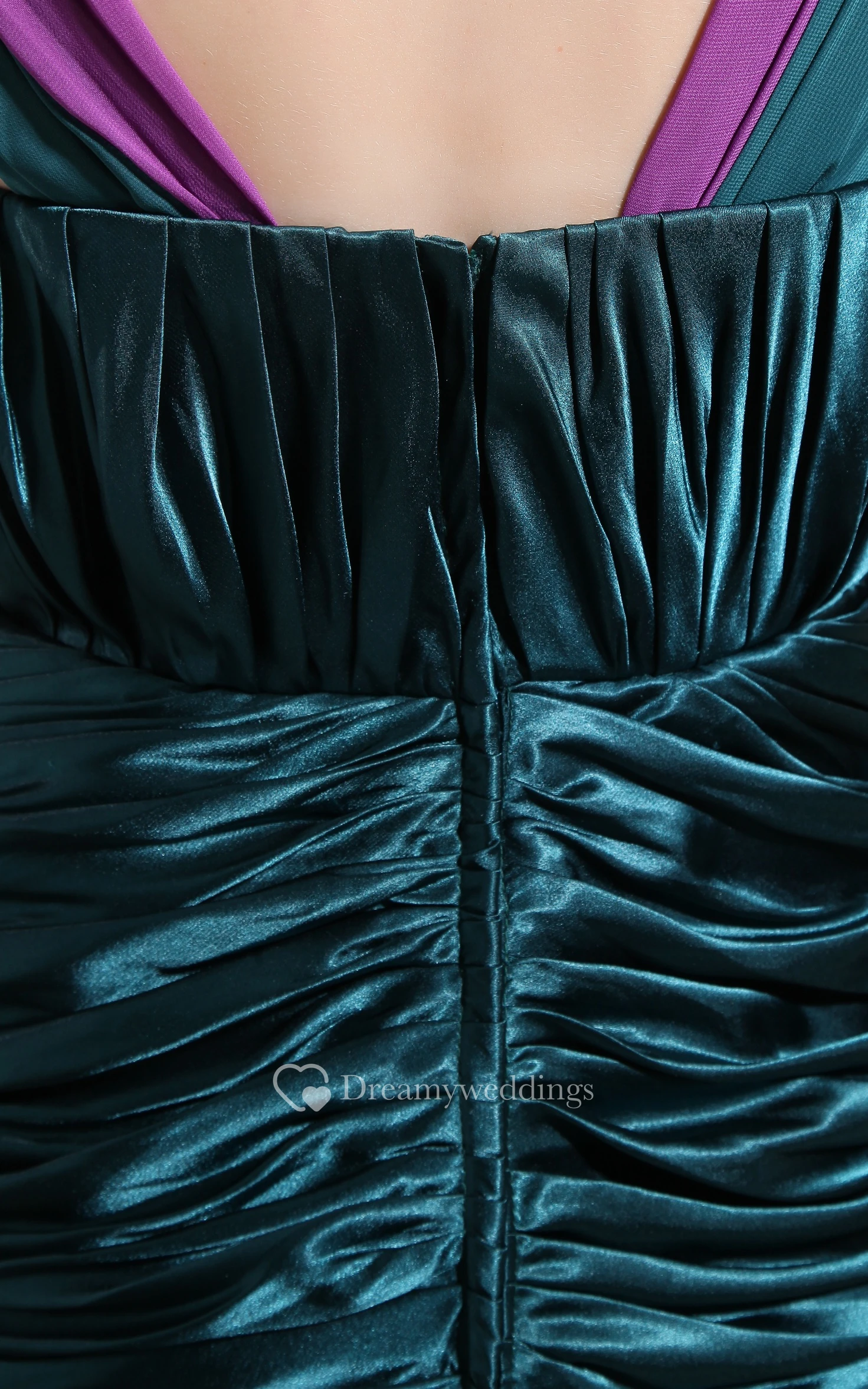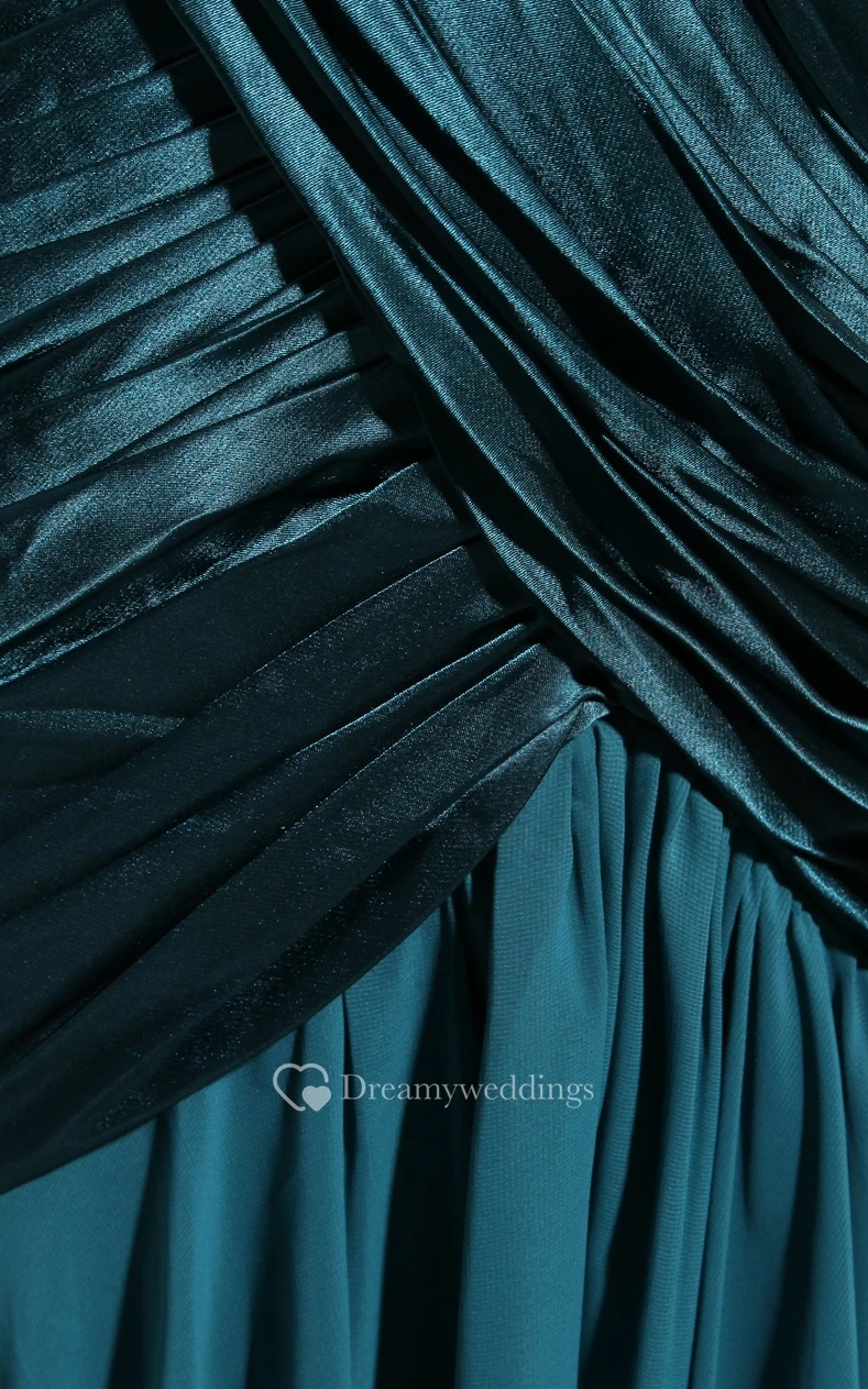 Plunged Sleeveless Chiffon Dress With Ruching and Brush Train
