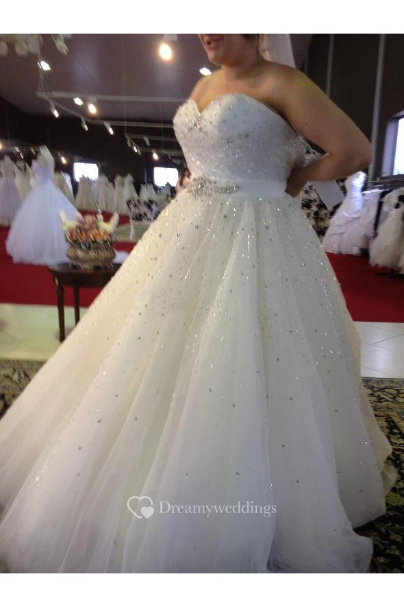 Plus Size Sweetheart Beading A Line Sweep Train Tulle Wedding Dress