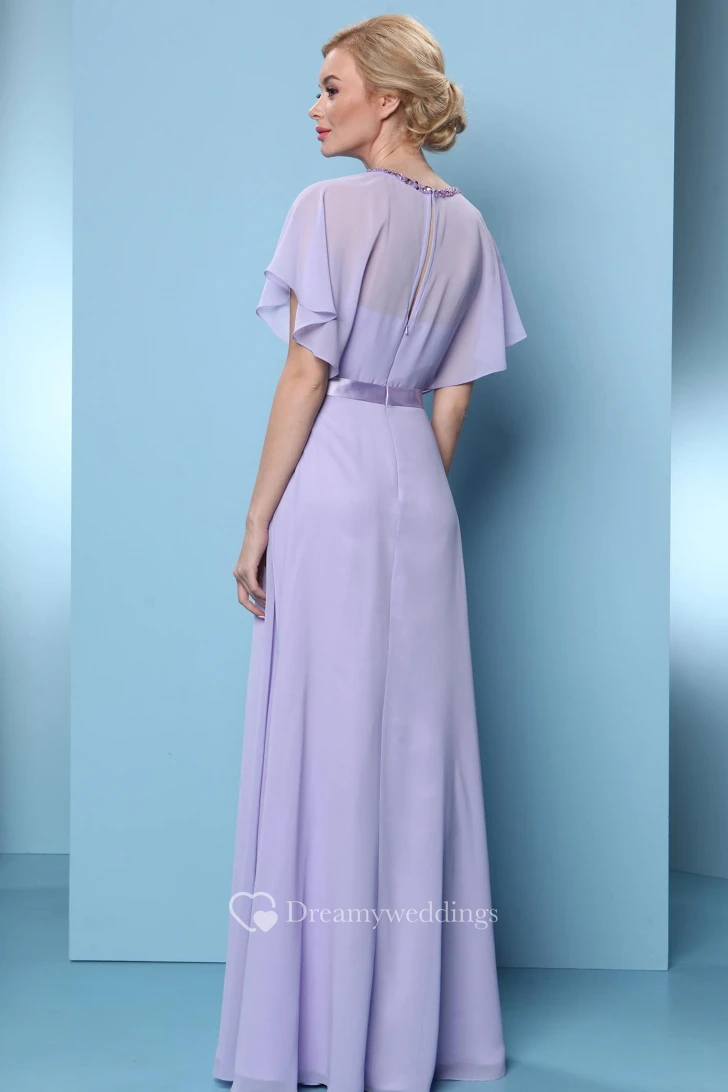 Poet Sleeve V-Neck Beaded Chiffon Bridesmaid Dress