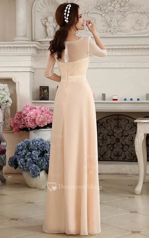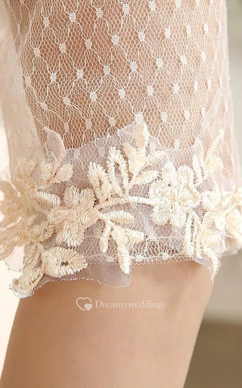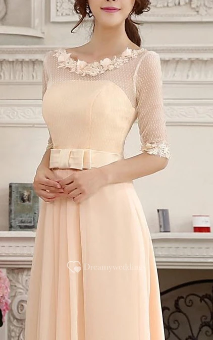Pretty Lace Appliques Half Sleeves Zipper-up Floor-Length Prom Dress
