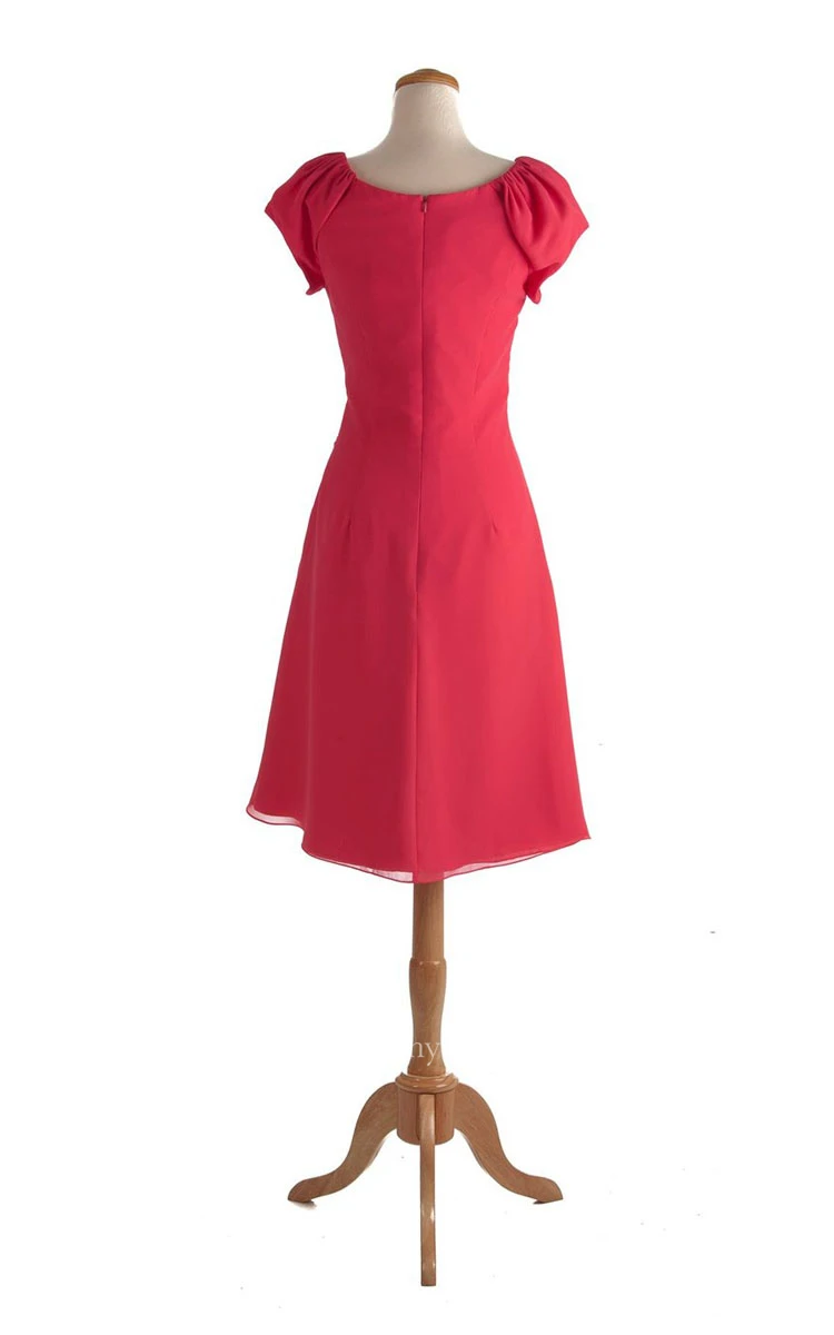 Puff Sleeve Knee-length Dress With 3D Flower at Waist