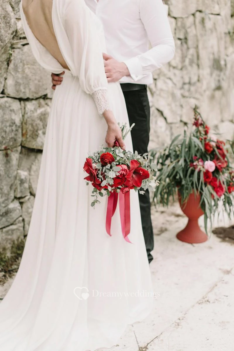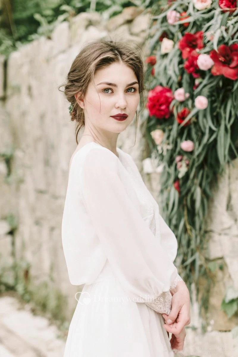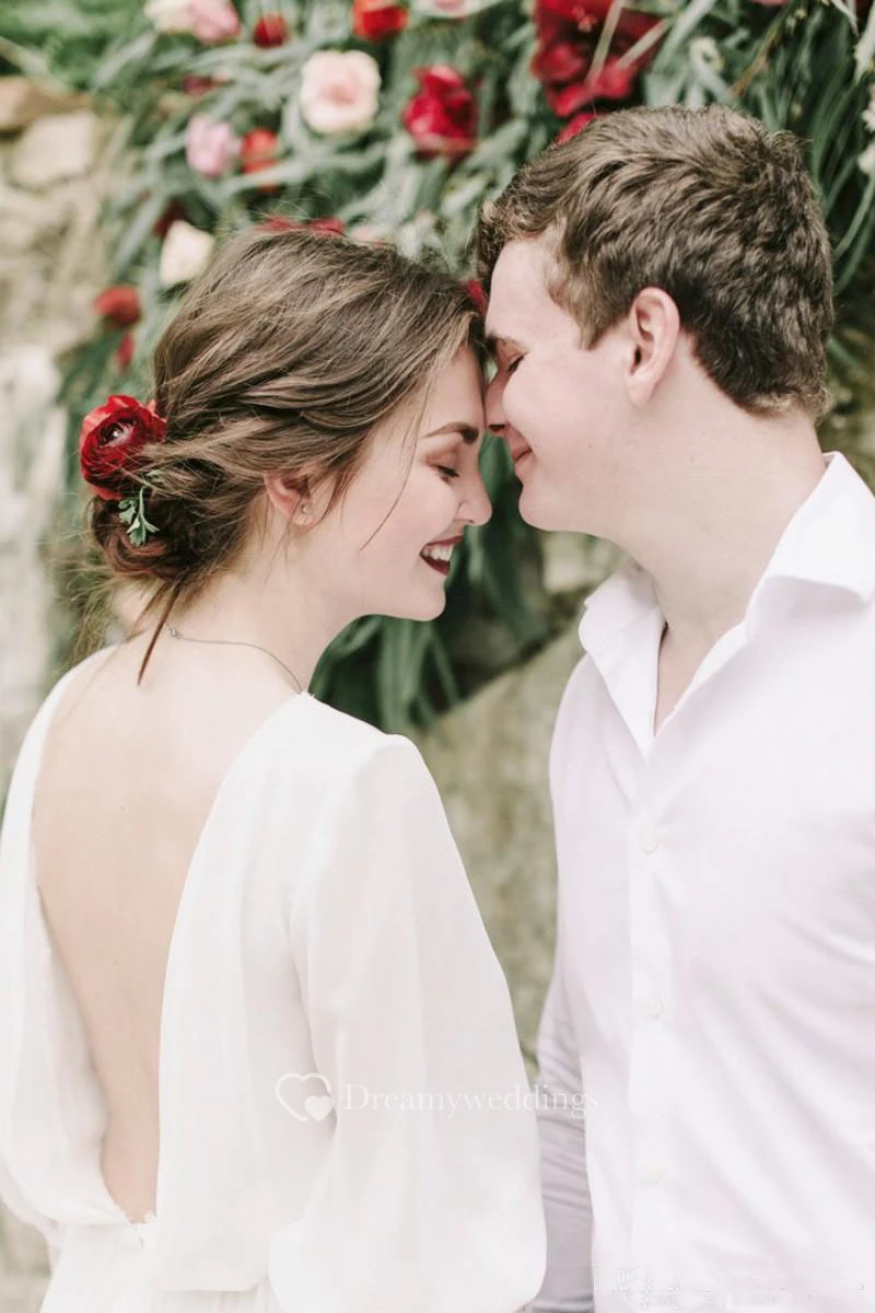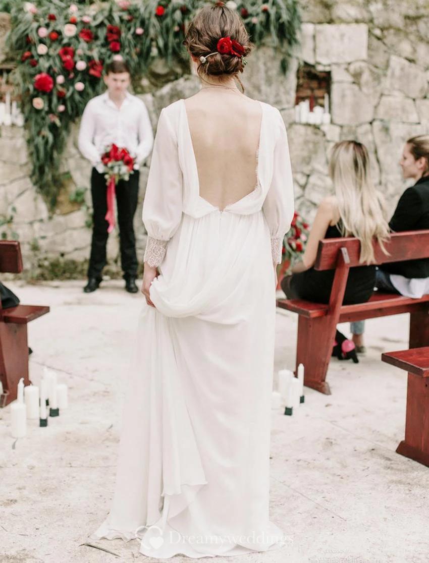 Puffy Long Sleeve Greek Sexy Backless Chiffon Beach Bridal Gown