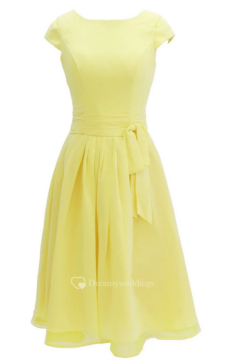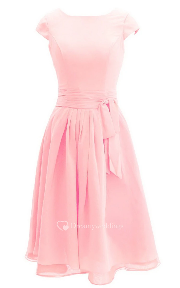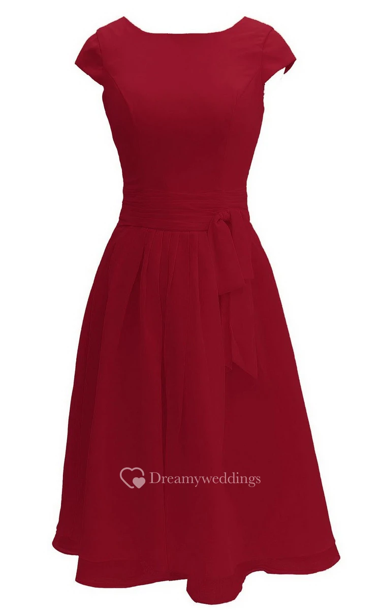 Pure Cap-sleeve Bateau Neck A-line Gown With Sash
