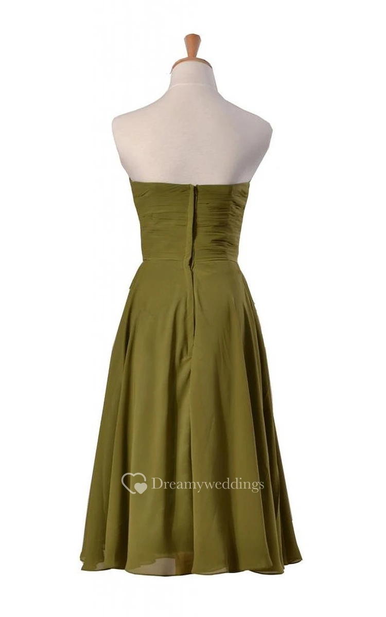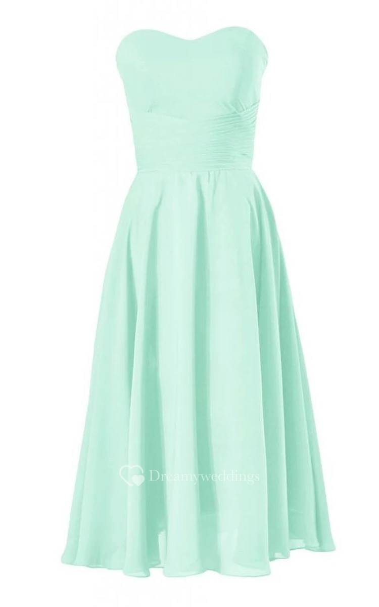 Pure Mid-calf Sweetheart A-line Gown With Ruched Band