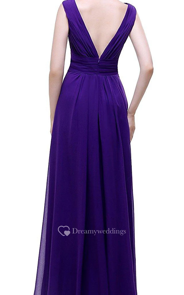 Purple Empire V-neck Beaded A-line Chiffon Dress With Low-v Back