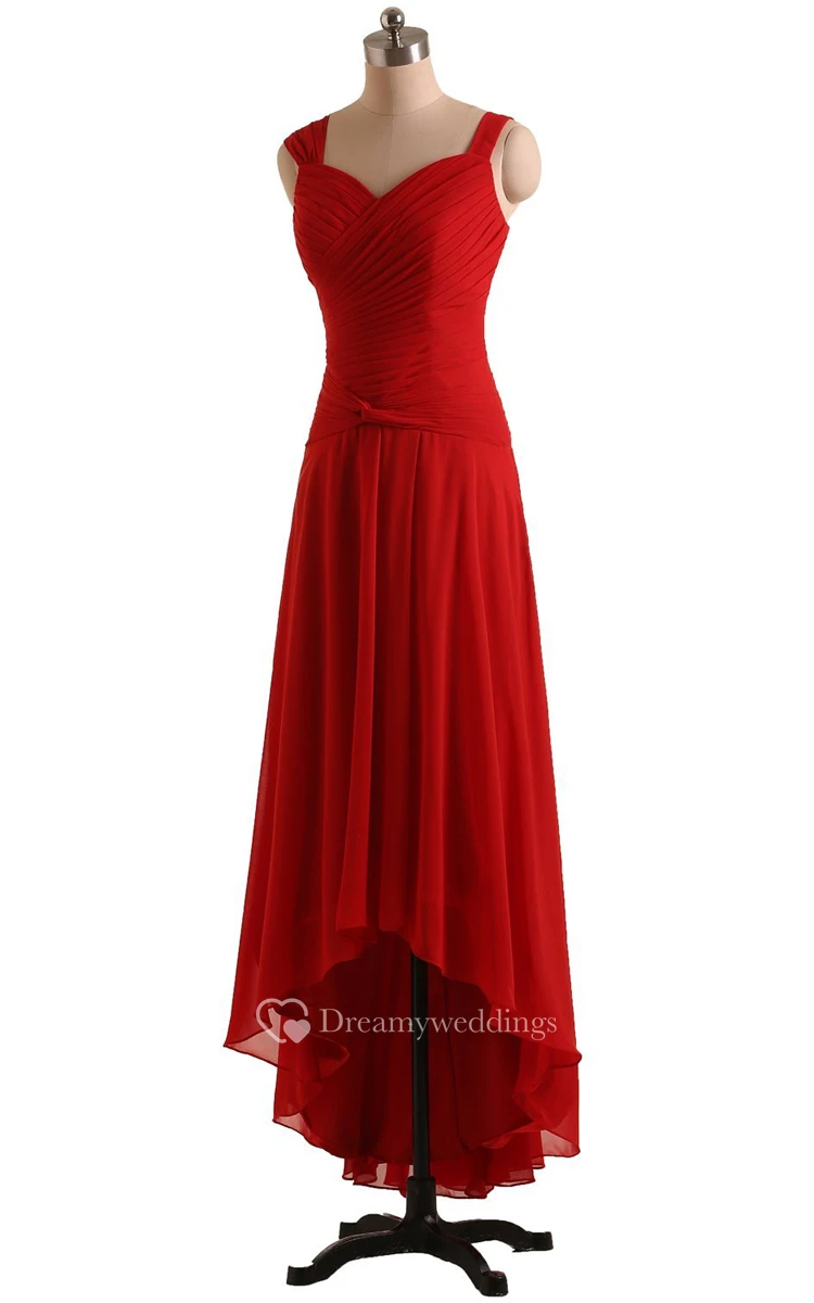 Queen Anne High-low Dress With Draping and Ruching