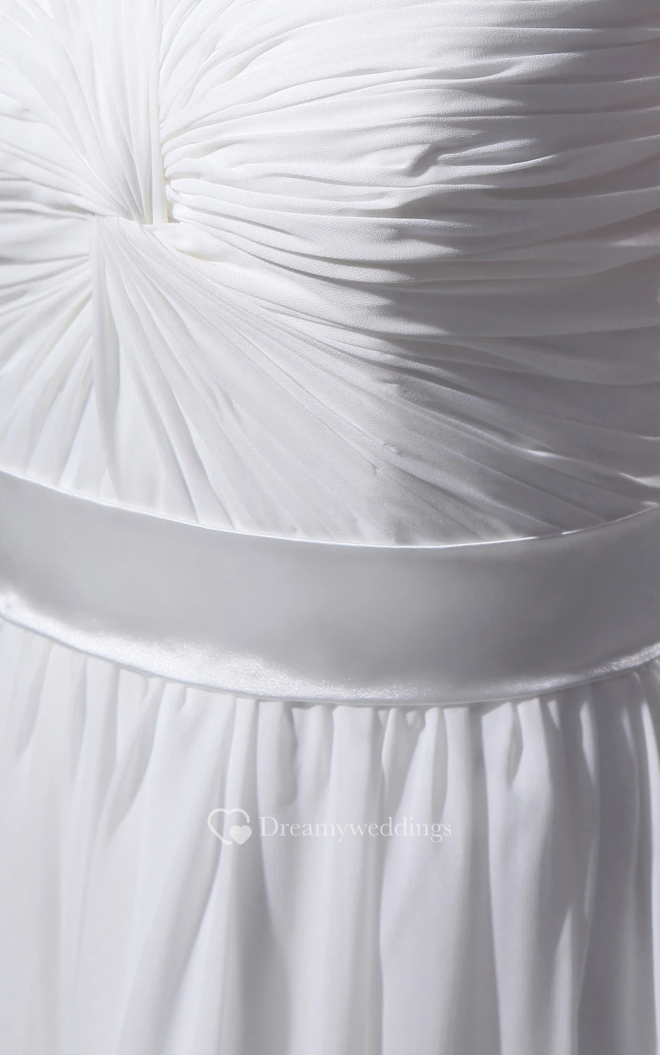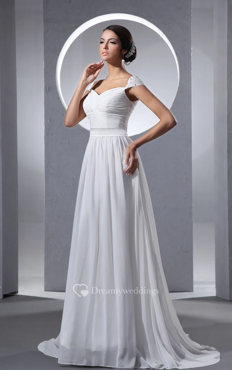 Queen Anne Neckline Chiffon Dress With Pleatings and Ruching
