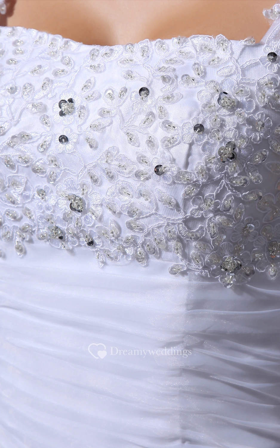 Queen Anne Neckline Organza Dress With Ruffles and Beading