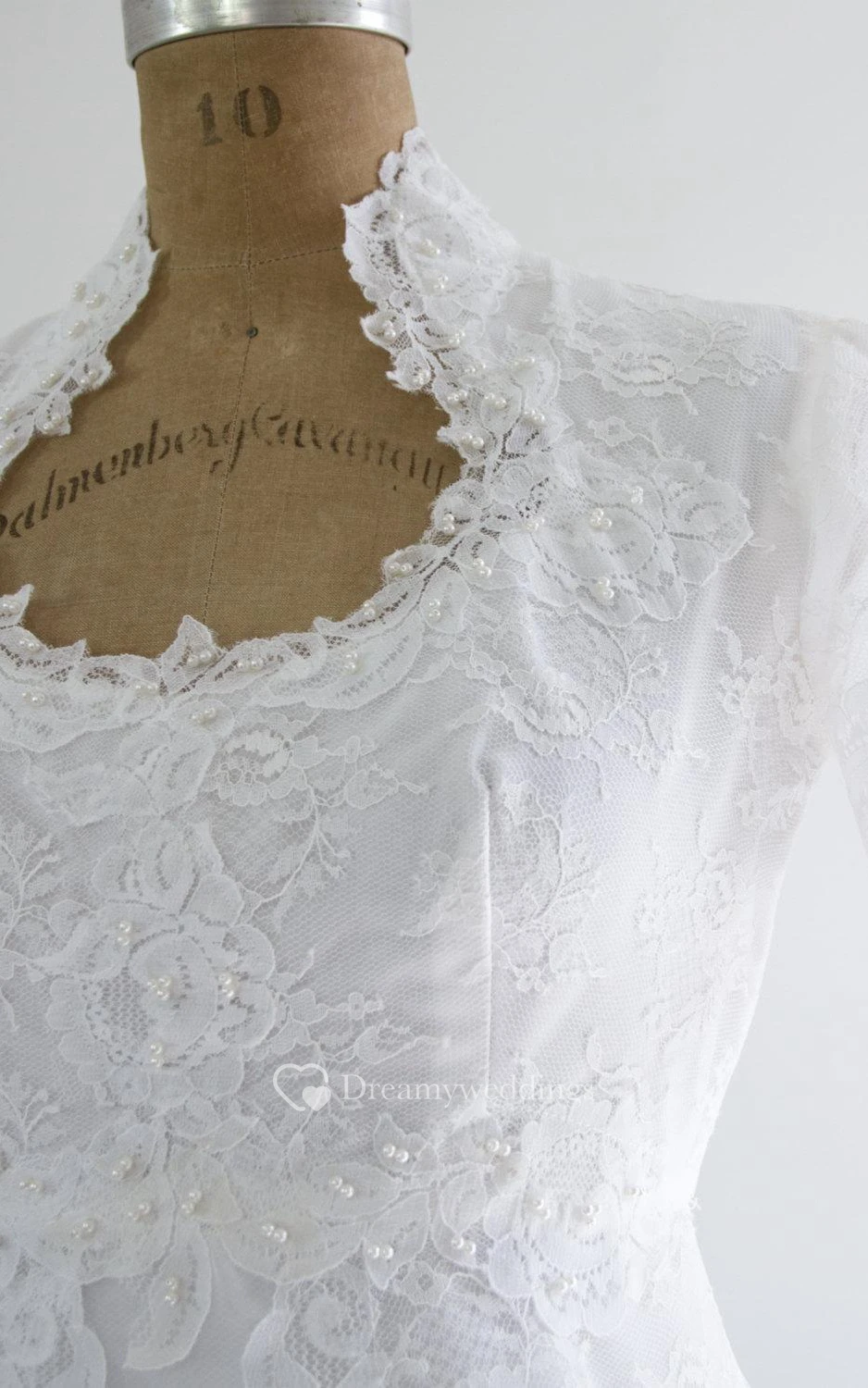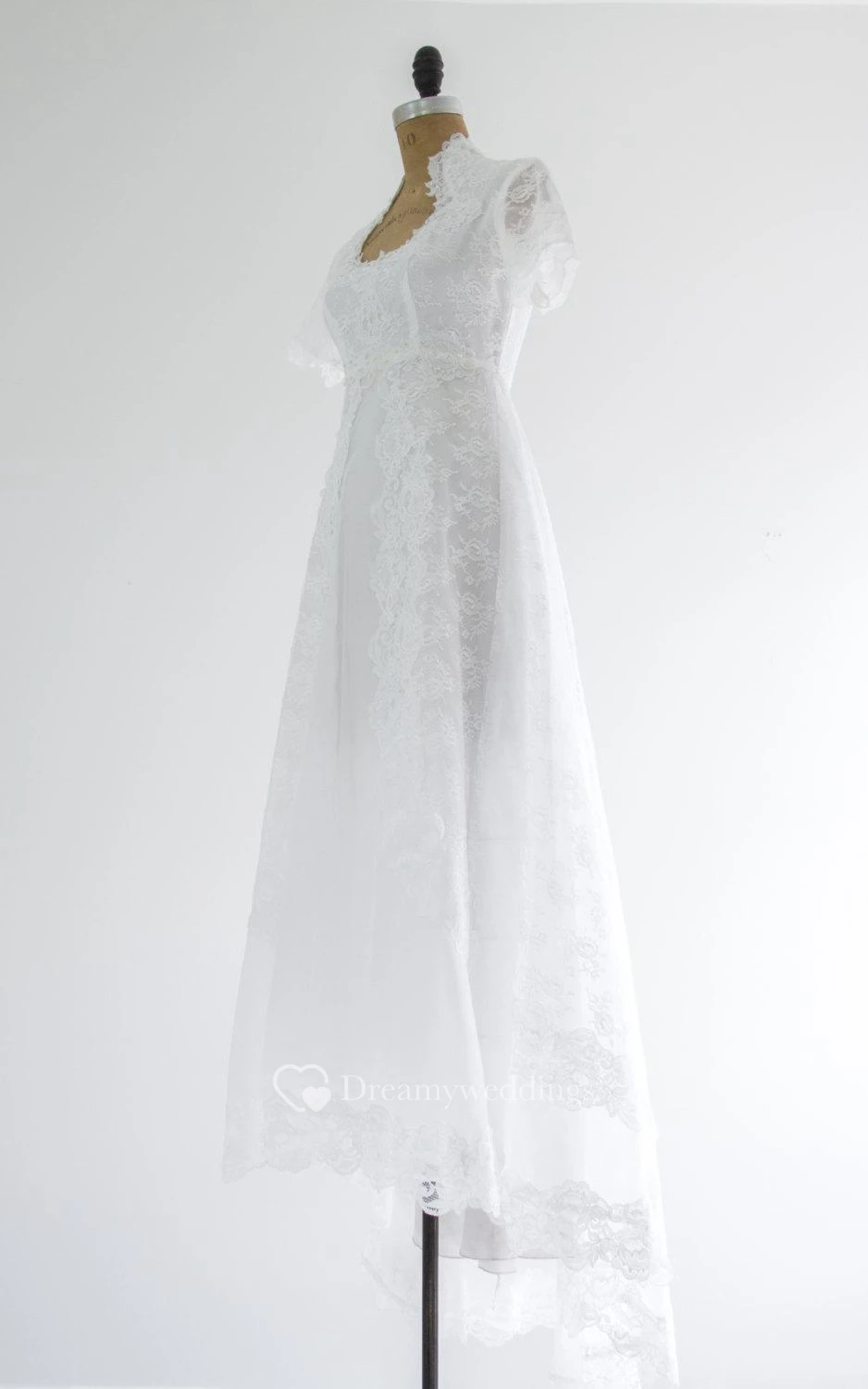 Queen Anne Neckline Short Sleeve A-Line Lace Dress With Beadings