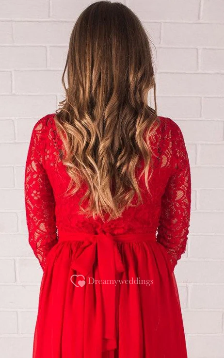 Red Long Bridesmaid Lace Handmade Red Chiffon Wedding Party Long Red Prom Dress