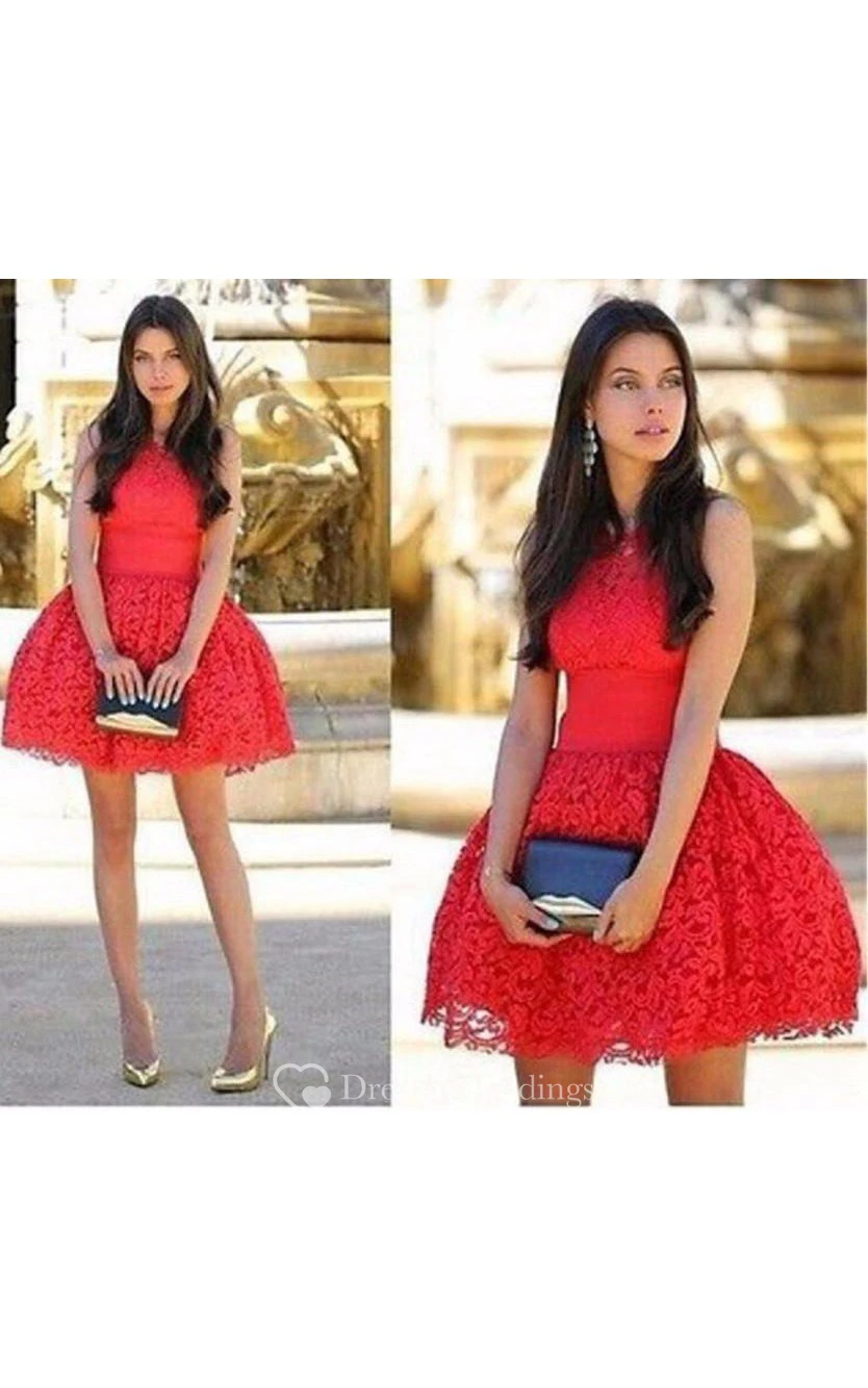 Red Mini Length Lace Cocktail Dress Ball Gown Party Dress