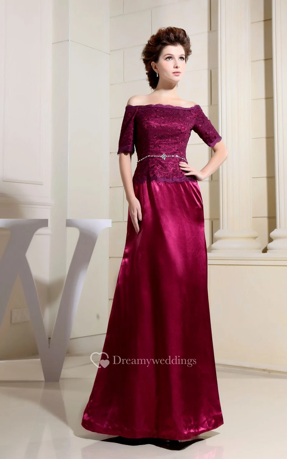 Refined Short-Sleeve Satin Maxi Dress With Beaded Bodice