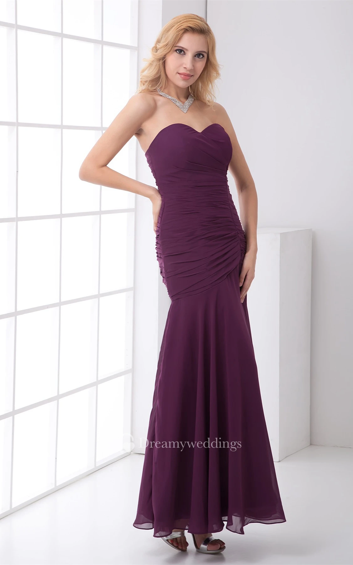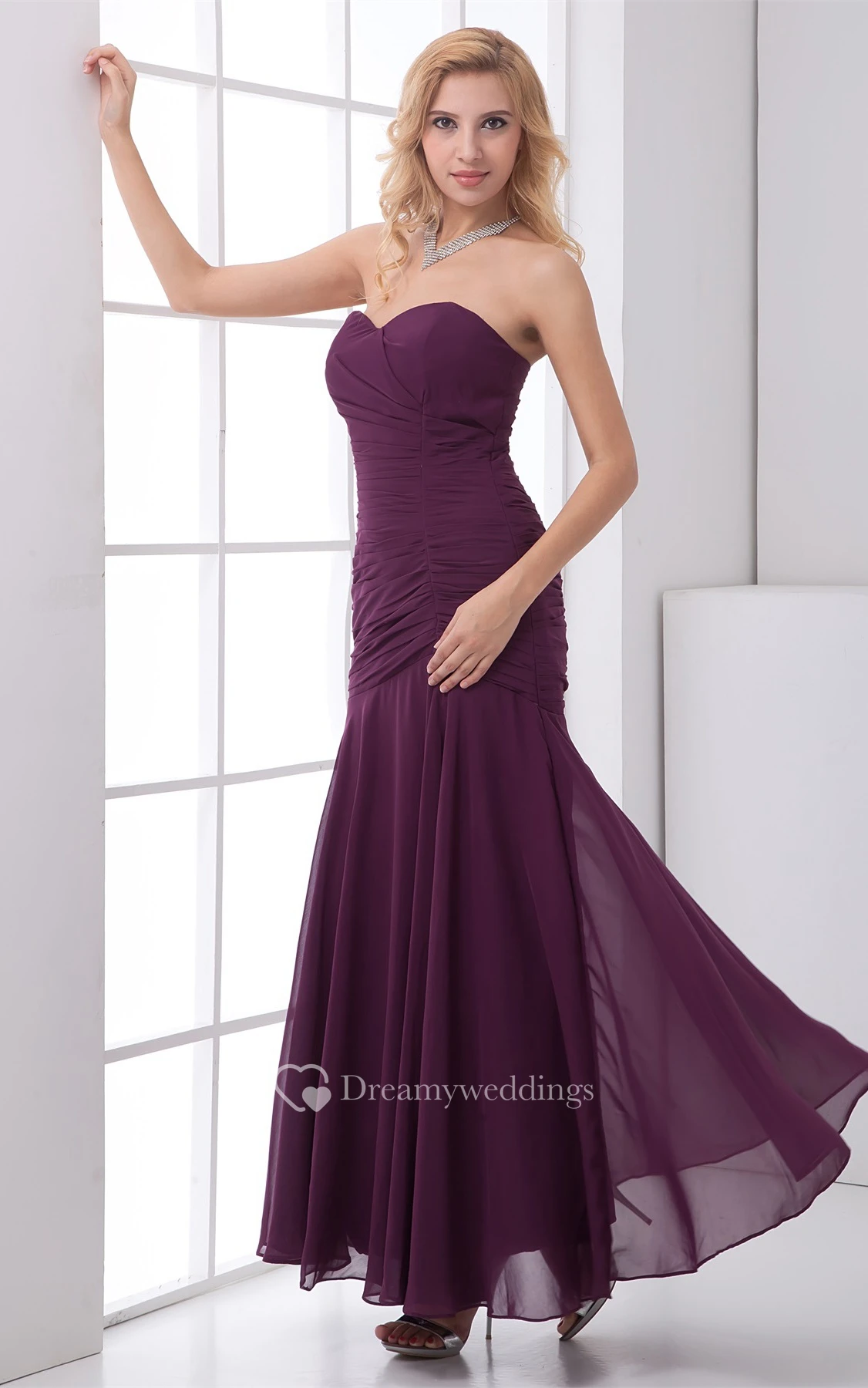 Refined Sleeveless Ruched Ankle Length Chiffon Bridesmaid Dresses