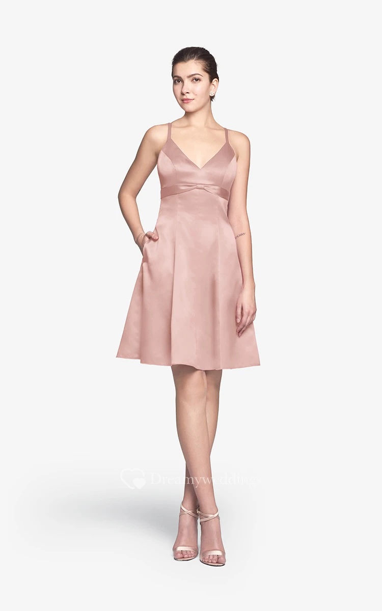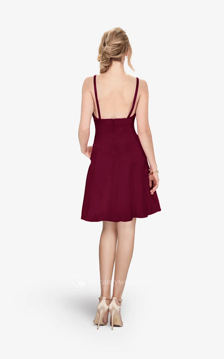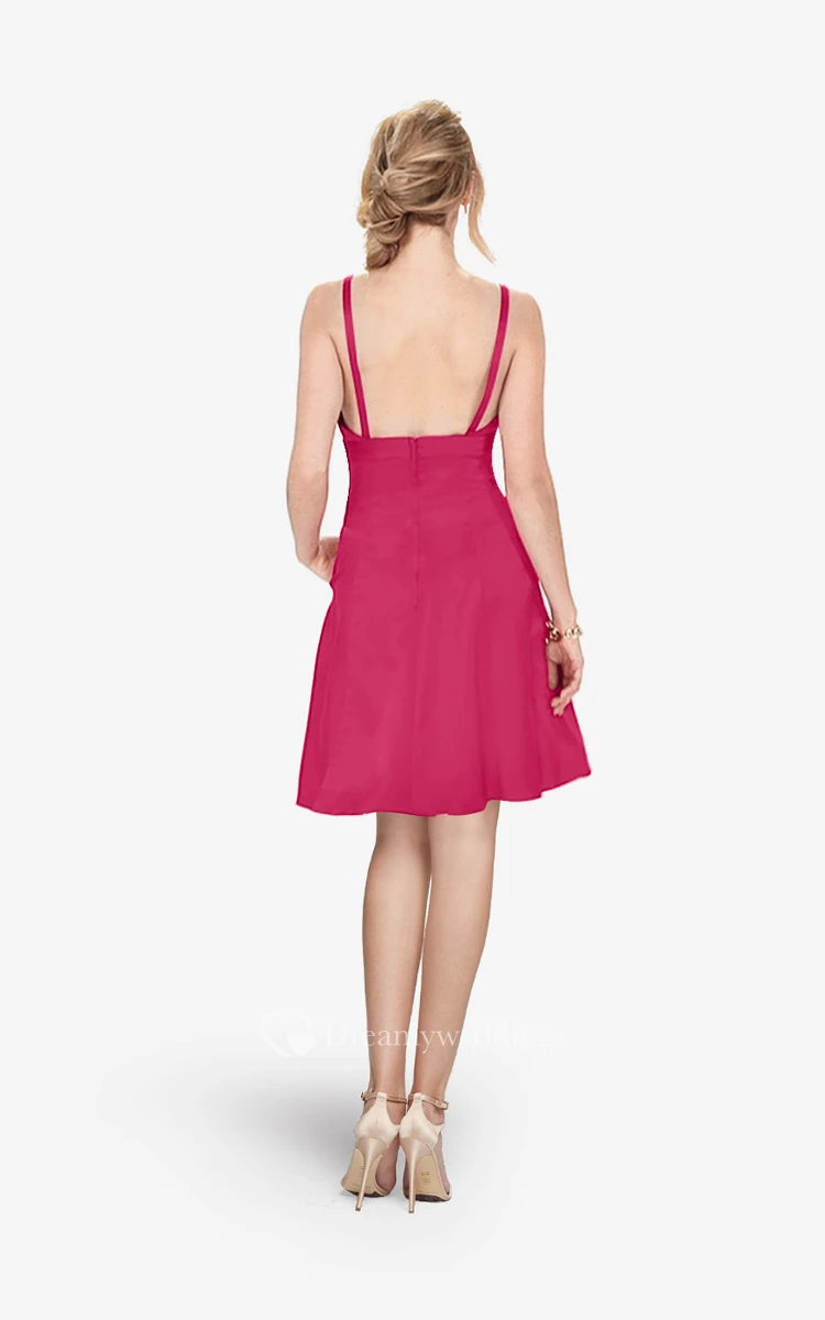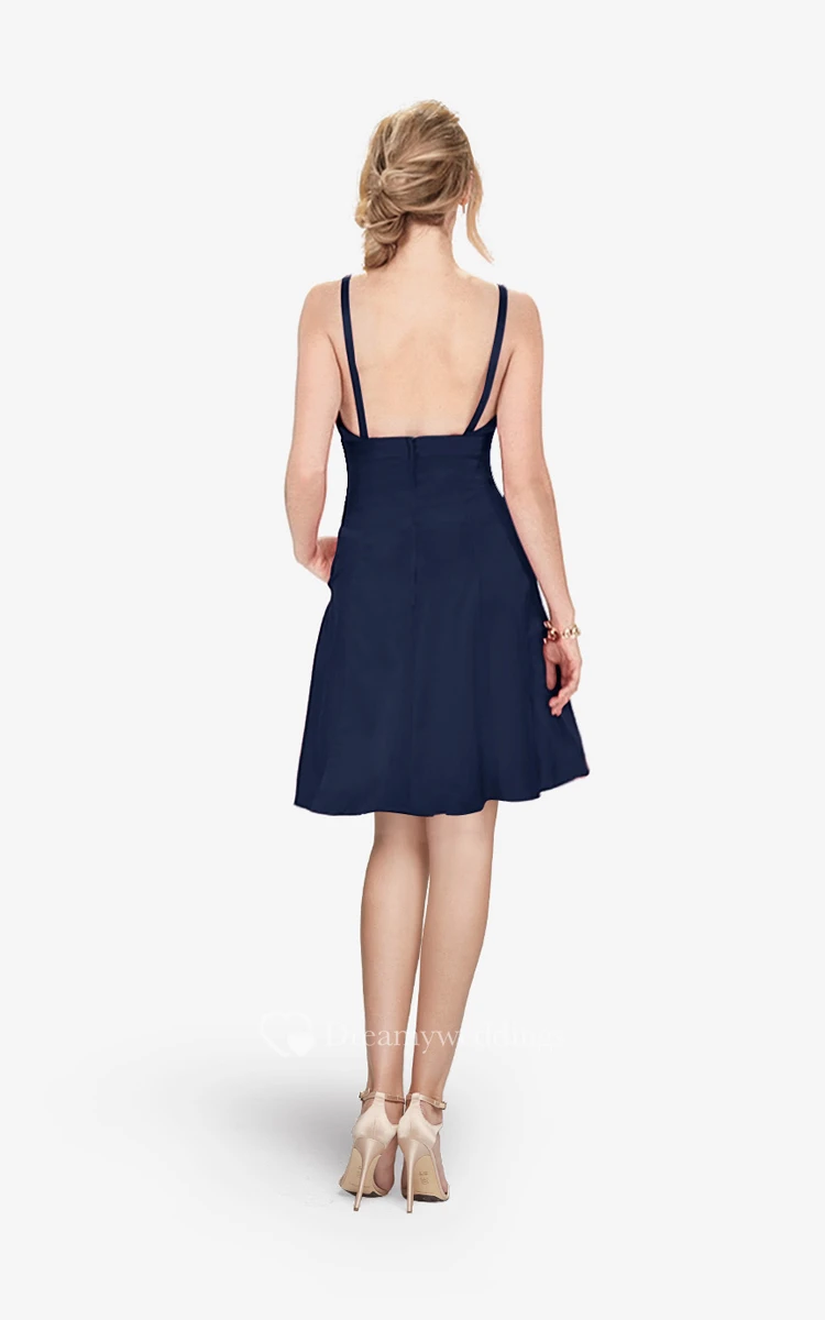 Refined Spaghetti Strap Mini A-line Dress With V-neck