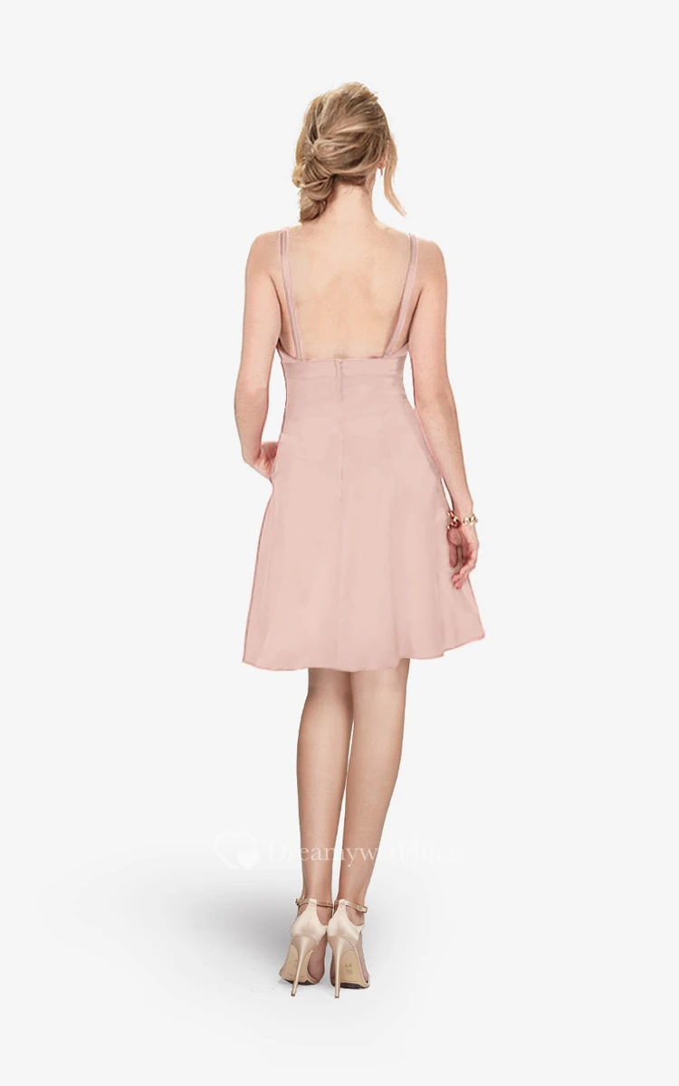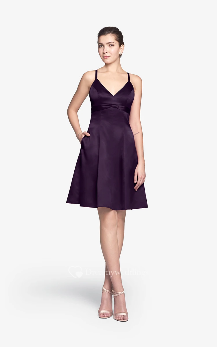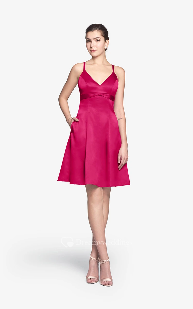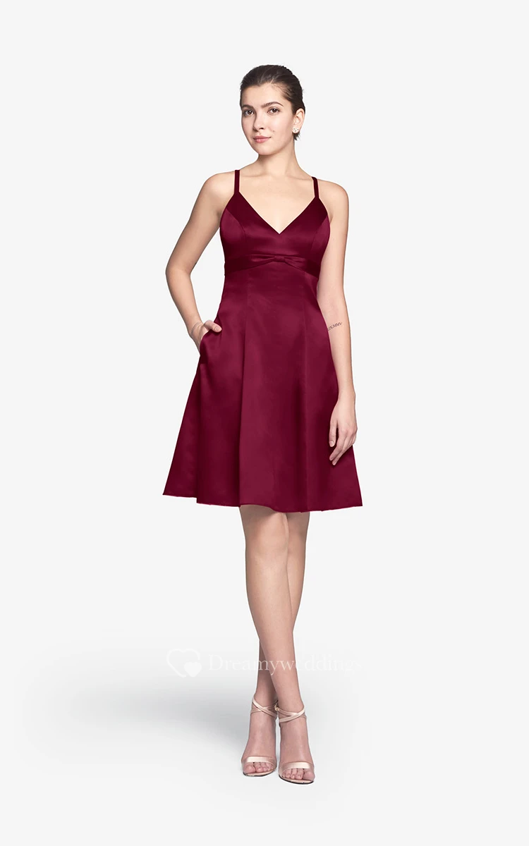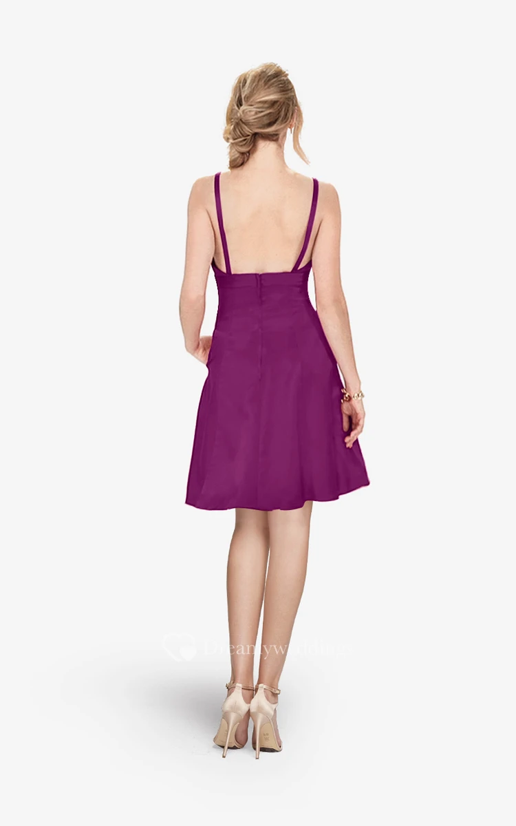 Refined Spaghetti Strap Mini A-line Dress With V-neck